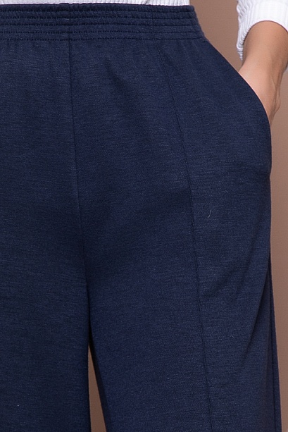 Брюки из трикотажно полотна расширенные к низу по поясу с эластичной резиной и функциональными карманами.Цвет: т.синий.