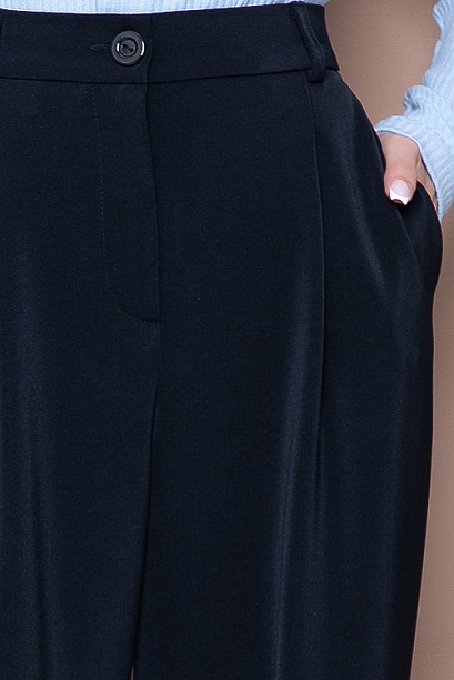 * Брюки-палаццо  из комфортной костюмной ткани,с высокой посадкой по талии,застегивающиеся на молнию в гульфике.По переду от пояса застрочены  мягкие складки.В боковых швах функциональные карманы.Пояс притачной,застегивающийся на одну пуговицу,посаженный по спинке на резину.
