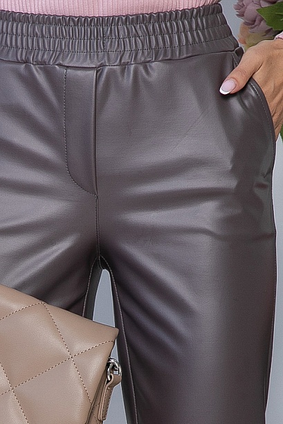 Комфортные брюки из экокожи,в боковых швах функциональные карманы,удобную посадку по талии обеспечивает эластичный пояс на резинке.