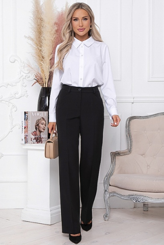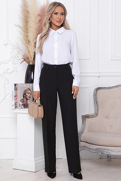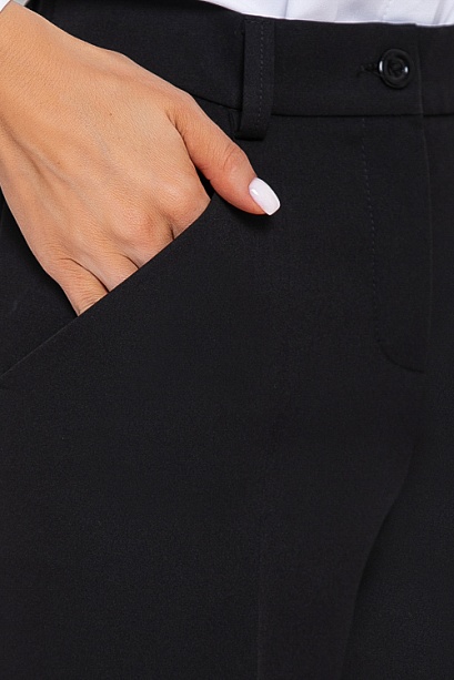 * Брюки из костюмной ткани со средней посадкой,прямого силуэта с заутюженными стрелками.Пояс притачной застегивающийся на пуговицу, по спинке собран на резину для удобства в носке.Застежка в гульфике на молнию.По спинке имитация кармана с листочкой.