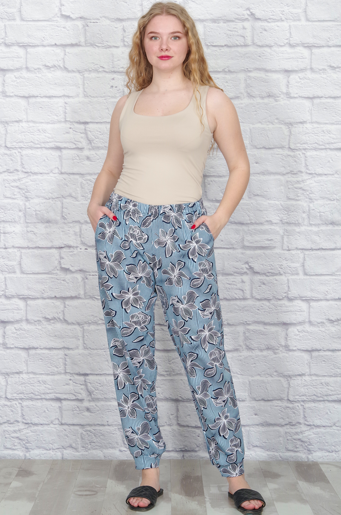 Легкие брюки из натуральной хлопчатобумажной кулирки позволят Вам чувствовать себя комфортно в жаркий солнечный день. Модель свободная, снизу на манжете, удобные боковые карманы, пояс на широкой резинке.