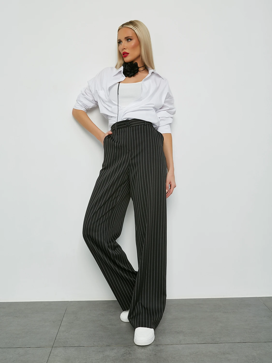 Притачной пояс оснащен петлями для ремня и частичной резинкой сзади.