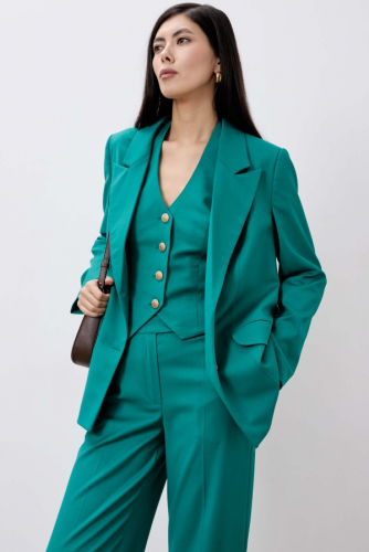 Брюки широкие с поясом на резинке и завязками. По переду боковые карманы. В составе полотна присутствует декоративная металл. нить.