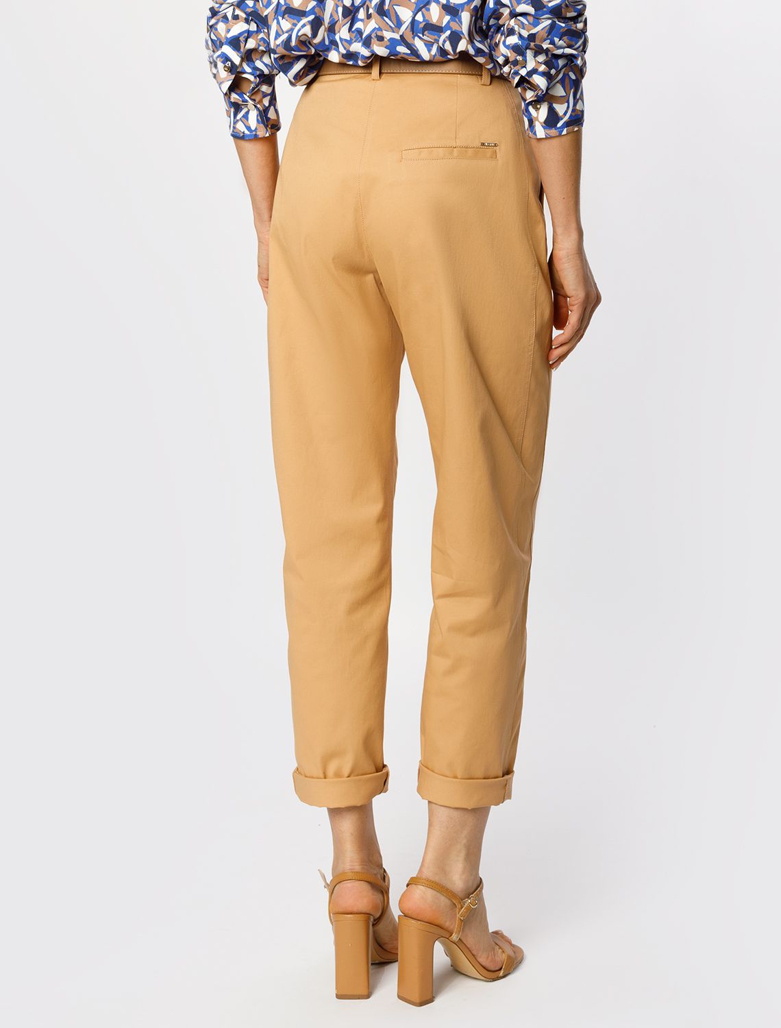 Брюки-бананы в стиле кэжуал выполнены из хлопкового твила. Натуральный материал ткани обеспечивает высокий уровень комфорта, отличную гигроскопичность и воздухопроницаемость. Эластан в составе изделия минимизрует деформацию модели и продлевает срок носки. Брюки дополнены защипами и боковыми карманами. Зауженный силуэт подчеркивает достоинства и скрывает недостатки фигуры.