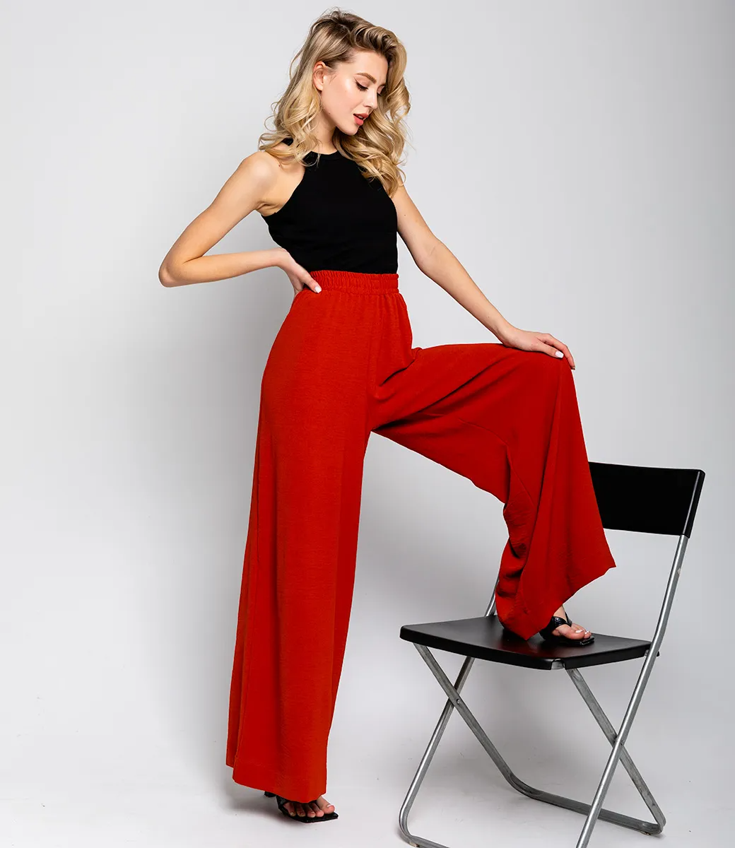 Стильные брюки с поясом на резинке помогут создать элегантный и женственный образ. Свободный крой данного изделия дарит комфорт в носке.