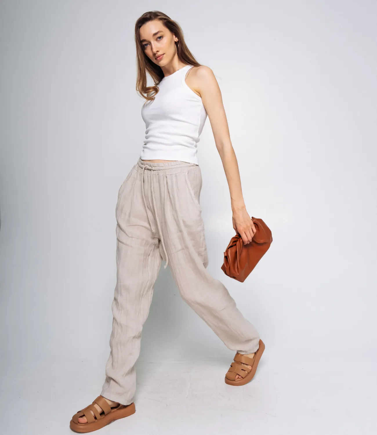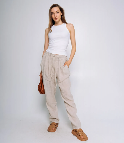 Брюки – это часть гардероба, которая подчеркивает уникальность каждой представительницы прекрасного пола. Данная модель брюк подойдет для летнего сезона. Их выбирают женщины, которые ценят сочетание качества и стиля. Свободный крой брюк придает им легкость и комфорт. Производитель умеет находить уникальные и стильные решения. Для изготовления выбрана ткань 100% лён, которая характеризуется отличным качеством. Даже после многих стирок брюки сохранят свою первоначальную привлекательность. Вы сможете их носить с большим удовольствием. Обратите внимание на цвет. Он является насыщенным и соответствует фотографии на сайте. Для уверенности в размере, мы представили на сайте таблицу. Воспользовавшись ей, вы сможете сами сделать мерки и удостовериться. Установленная нами цена является доступной. Не откажите себе в удовольствии быть стильной и уверенной! Рост 168, 89-63-92.
