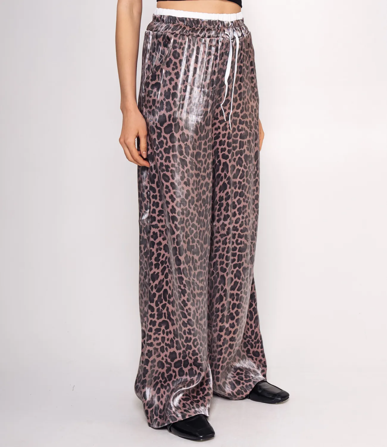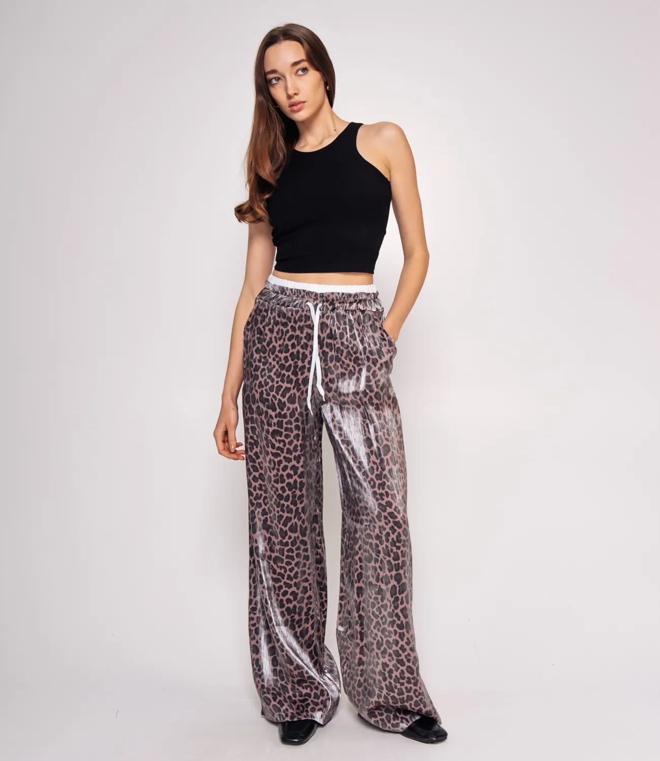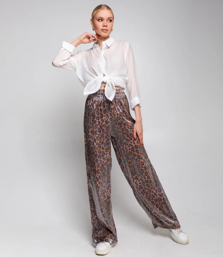 Брюки с высокой посадкой и резинкой на талии, которые свободно облегают ноги, отлично подчеркнут достоинства фигуры и скроют ее недостатки. Рост модели: 168, параметры: 85-63-92.