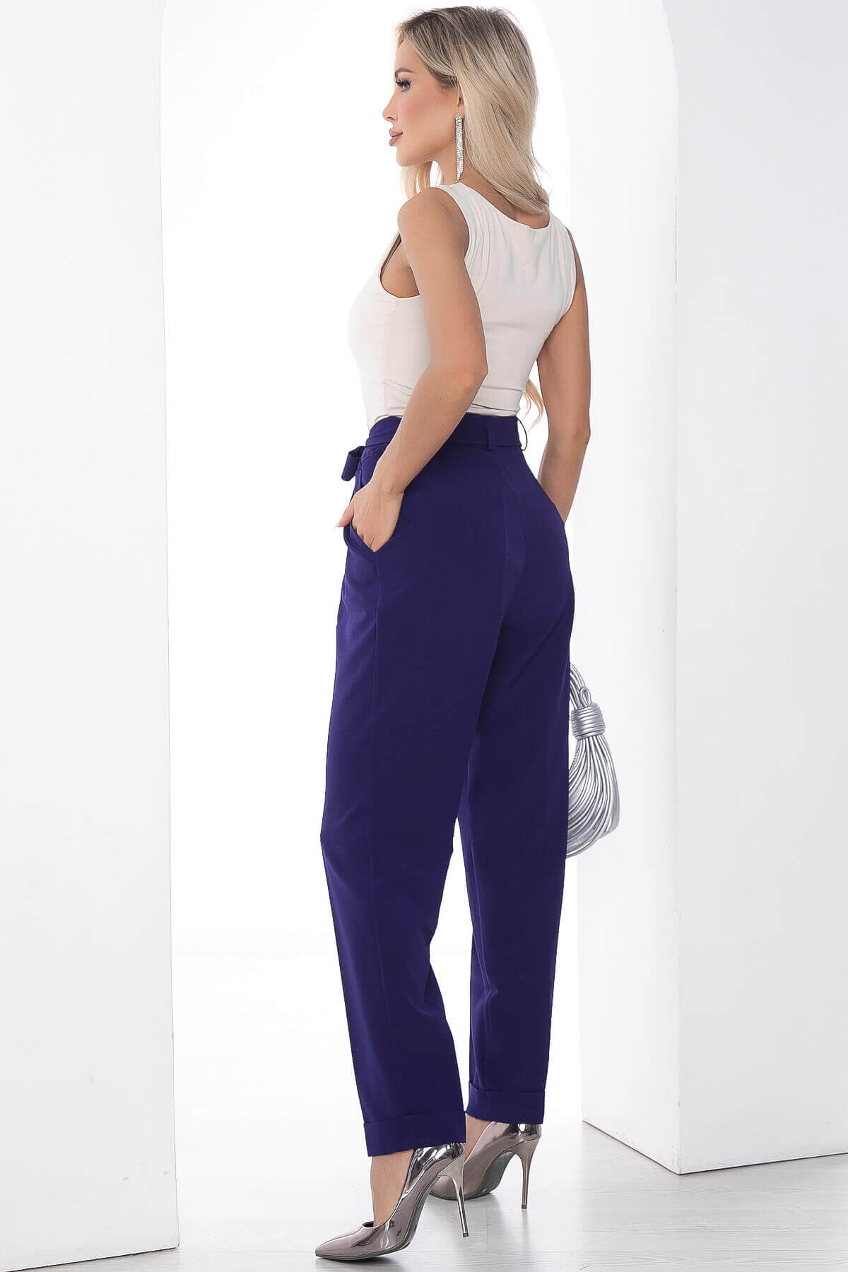 Превосходная модель деловых брюк с защипами в двух базовых цветах. Брюки прямые с карманами, пояс на пуговице, застежка-молния. Изделие имеет удобную глубокую посадку. Низ брюк оформлен манжетом. Особую оригинальность модели придает дополнительный длинный пояс.Такие брюки в сочетании с рубашкой или блузой станут вашим фаворитом при формировании делового гардероба.