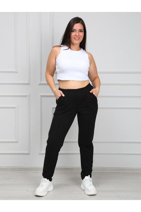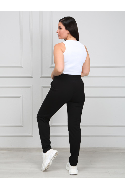 Брюки женские со "стрелкой". Зауженный крой, два боковых кармашка, пояс на широкой резинке. Очень удобные, не сковывают движений, за счет состава ткани, не мнутся и не теряют форму. Мягкая ткань футер 2-х нитка.