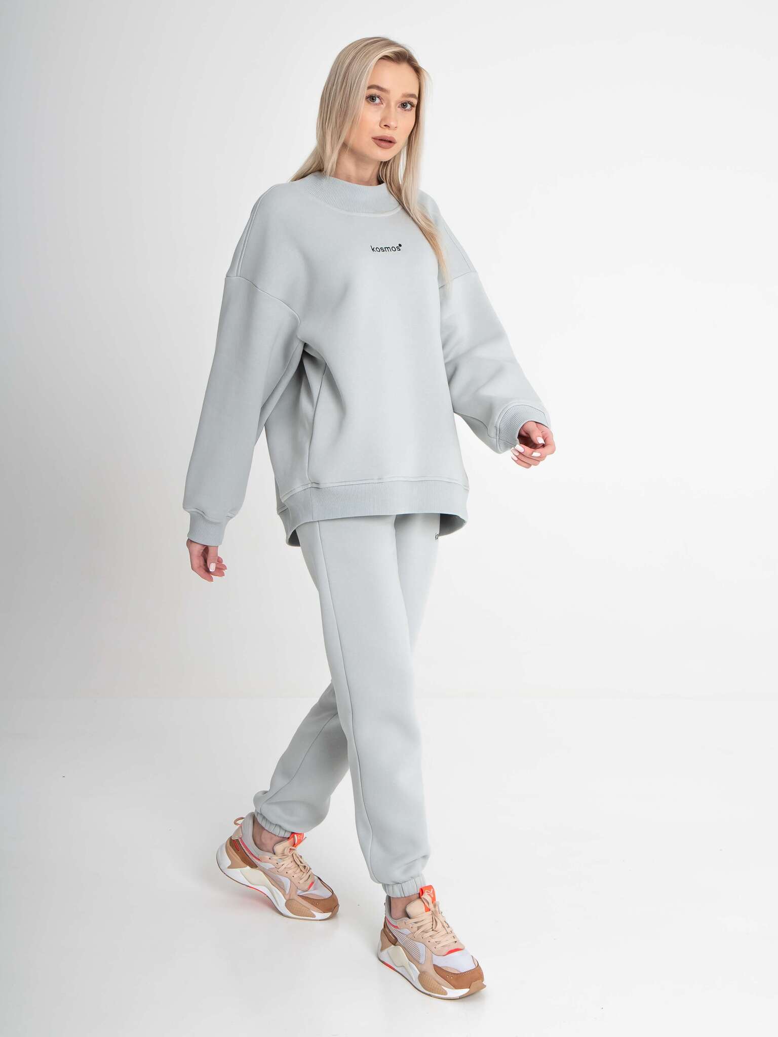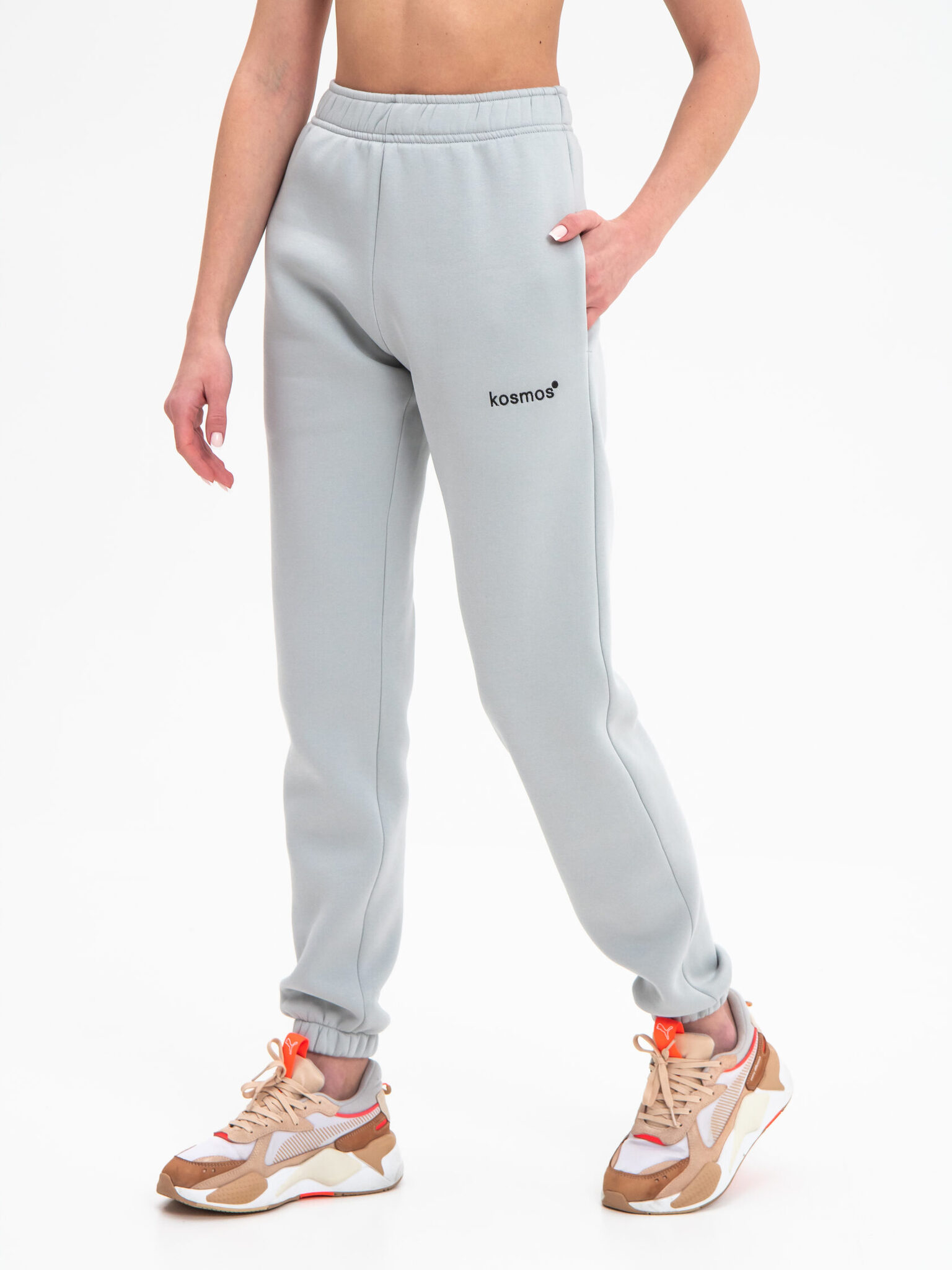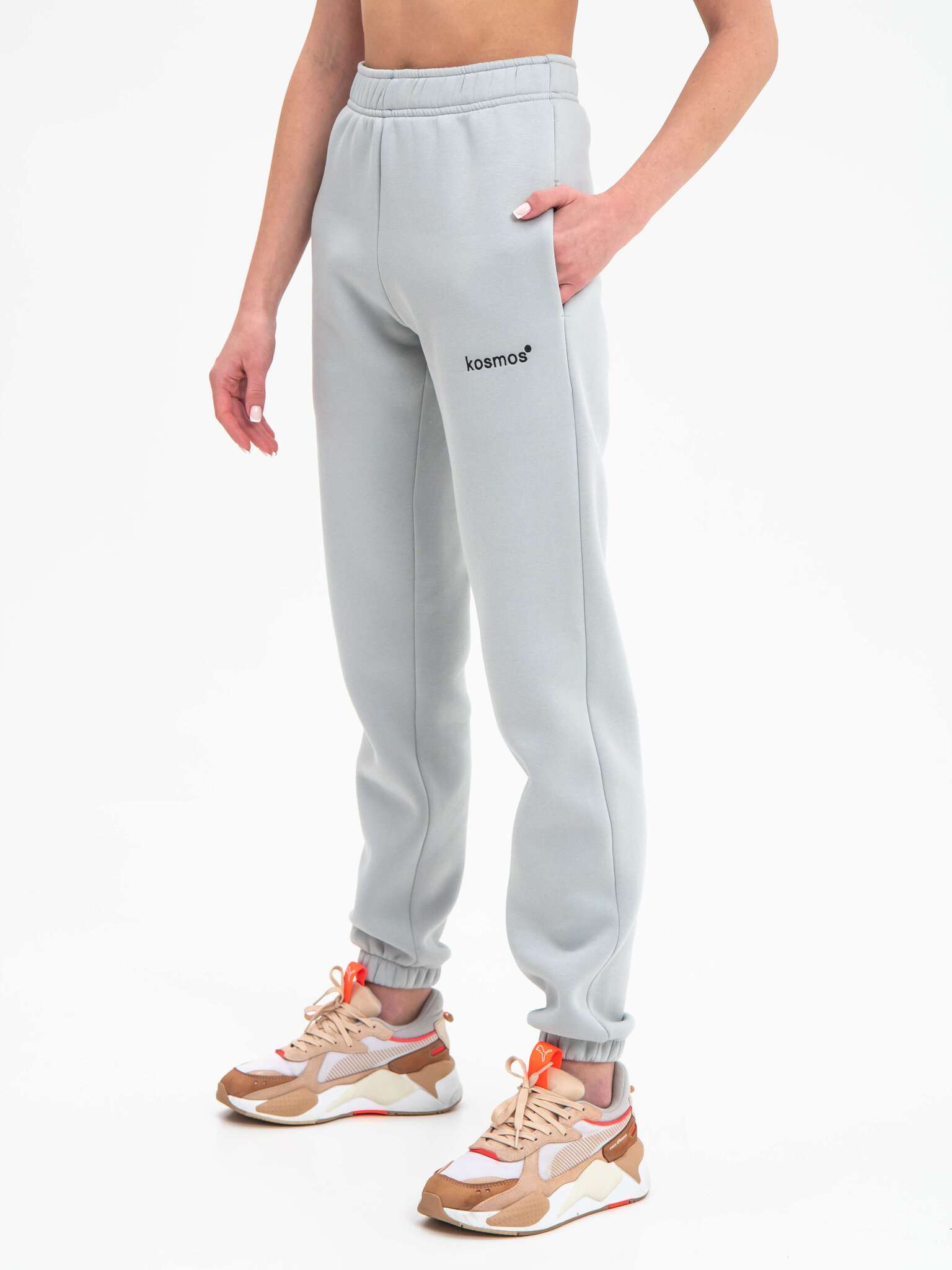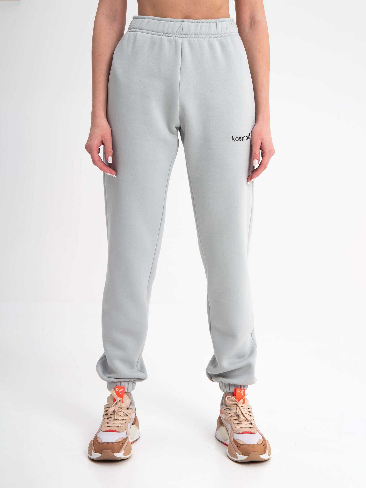 Брюки джоггеры женские светло серые с начесом