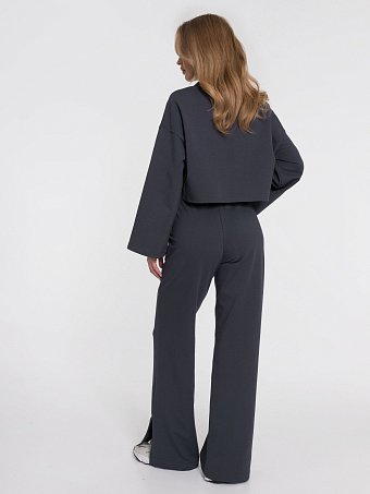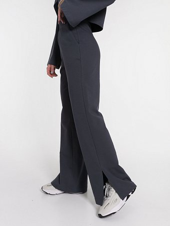 Брюки из мягкого футера с комфортной высокой посадкой. Модель дополнена функциональными карманами и разрезами внизу штанин, которые придают образу современный акцент. Отличный выбор для повседневного стиля, сочетающий удобство и лаконичный дизайн.