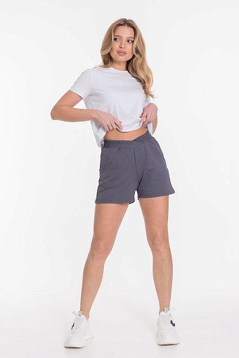 Шорты женские из хлопка с добавлением лайкры. Свободные, боковые карманы, пояс фигурный на резинке.