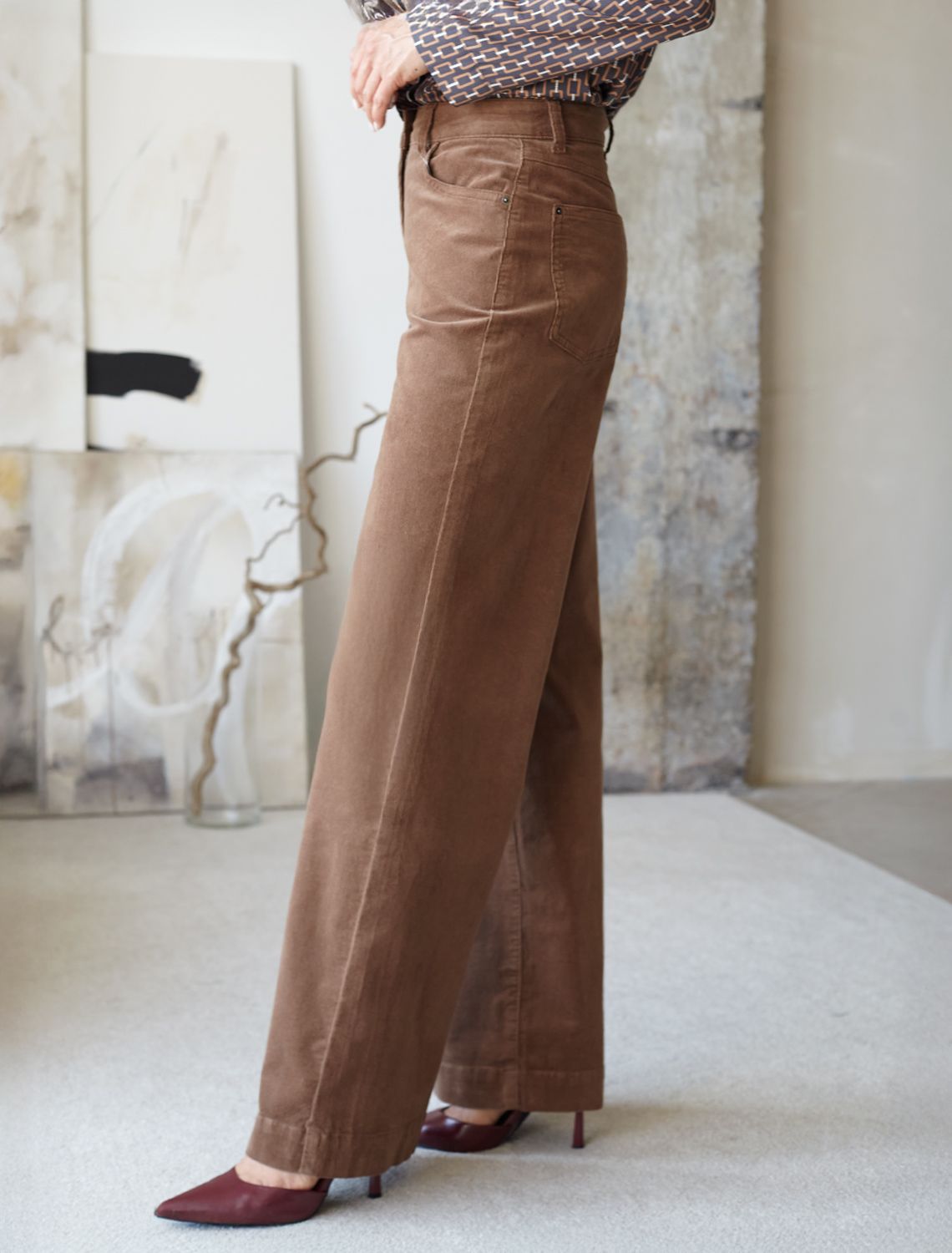 Брюки свободного кроя «трубы» выполнены из мягкого хлопкового микро-вельвета с добавлением эластана. Изделие комфортно садится по фигуре и не сковывает движения. Модель с пятью карманами, как у джинсов дополнена высококачественной фурнитурой с фирменным логотипом бренда. Идеально впишутся в повседневный образ, со свитером крупной вязки, курткой-косухой, ботинками на грубой подошве, челси и казаками. 98%Хлопок 2%ПУ