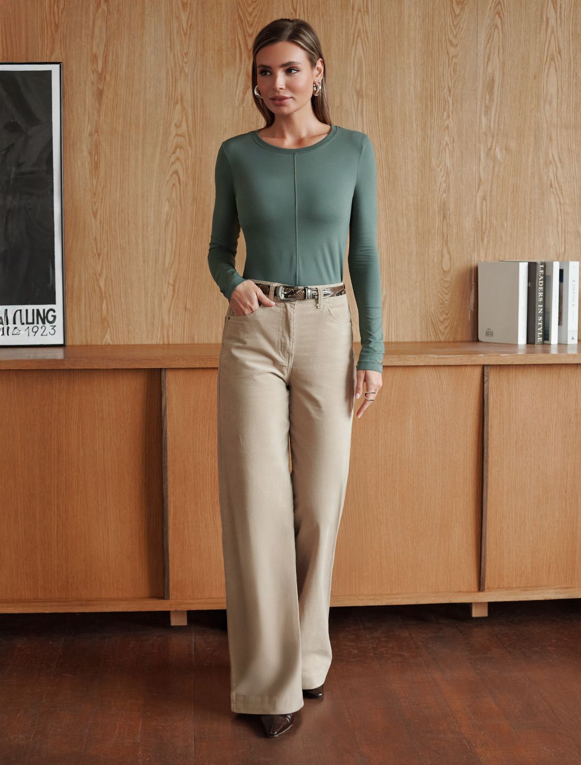Брюки свободного кроя «трубы» выполнены из мягкого хлопкового микро-вельвета с добавлением эластана. Изделие комфортно садится по фигуре и не сковывает движения. Модель с пятью карманами, как у джинсов дополнена высококачественной фурнитурой с фирменным логотипом бренда. Идеально впишутся в повседневный образ, со свитером крупной вязки, курткой-косухой, ботинками на грубой подошве, челси и казаками. 98%Хлопок 2%ПУ