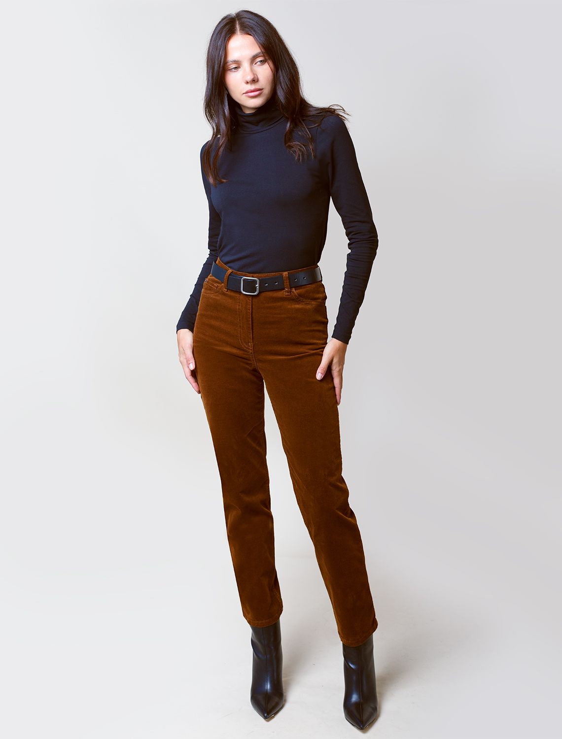 Брюки выполнены из мягкого хлопкового микро-вельвета с добавлением эластана. Изделие комфортно садится по фигуре и не сковывает движения. Модель с пятью карманами, как у джинсов-скинни дополнена высококачественной фурнитурой с фирменным логотипом бренда. Хорошо комбинируется с вязаным трикотажем, блузками и денимом. Как альтернатива брюкам, в нестрогий офисный дресс-код. 98%Хлопок 2%ПУ