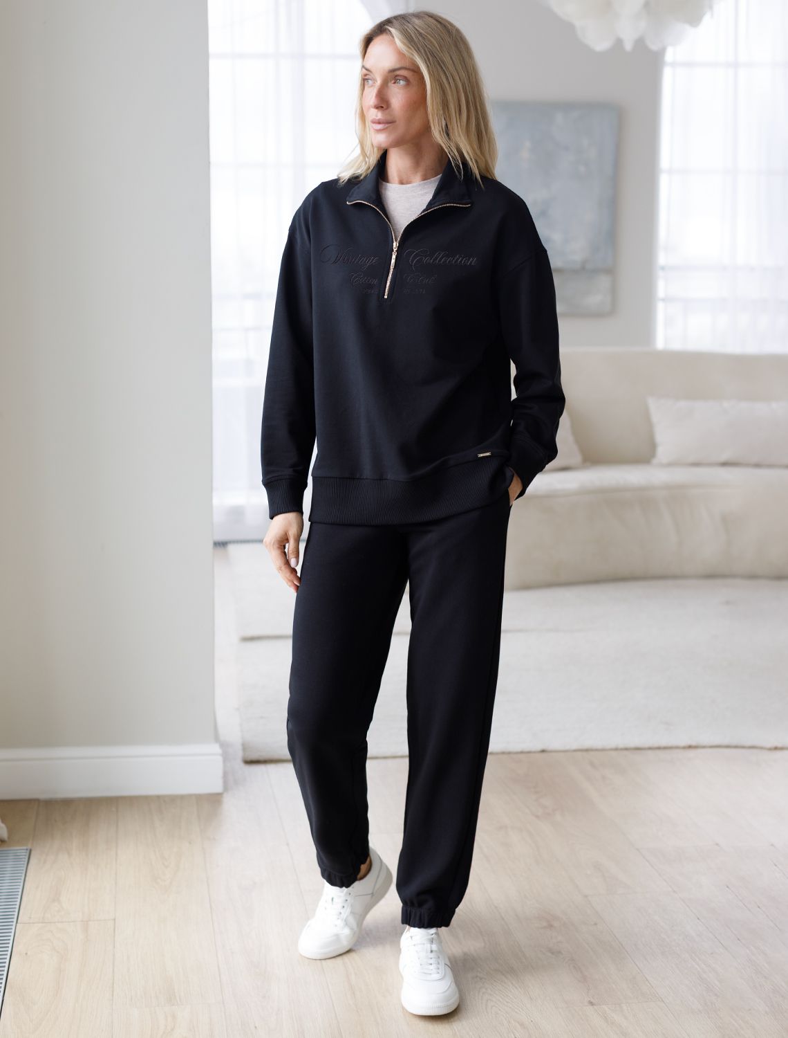Брюки выполнены из премиального футера трехнитки без начеса. Модель дополнена эластичным поясом на резинке и хлопковым шнурком с золотистой фурнитурой. По бокам два кармана. Наличие эластана в составе гарантирует формоустойчивость и износостойкость изделия. Изделие сочетается в костюме с худи D49.050 80%Хлопок 20%ПЭ
