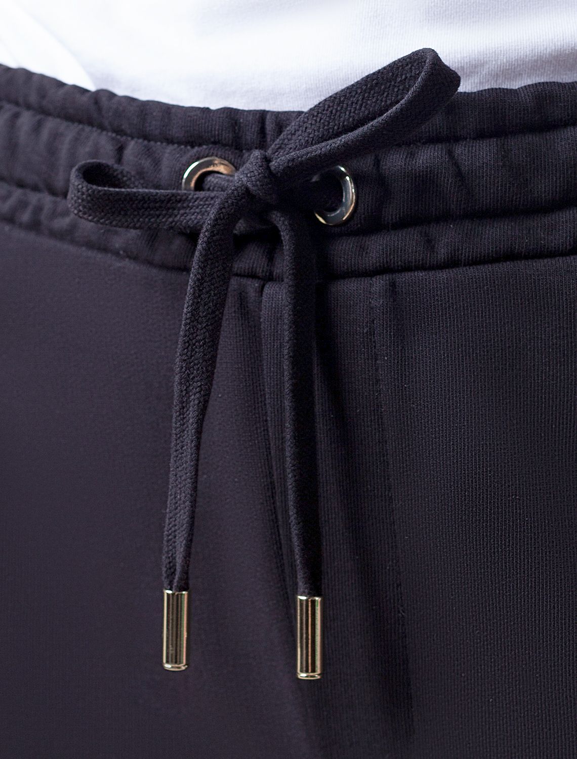 Брюки выполнены из премиального футера трехнитки без начеса. Модель дополнена эластичным поясом на резинке и хлопковым шнурком с золотистой фурнитурой. По бокам два кармана. Наличие эластана в составе гарантирует формоустойчивость и износостойкость изделия. Изделие сочетается в костюме с худи D49.050