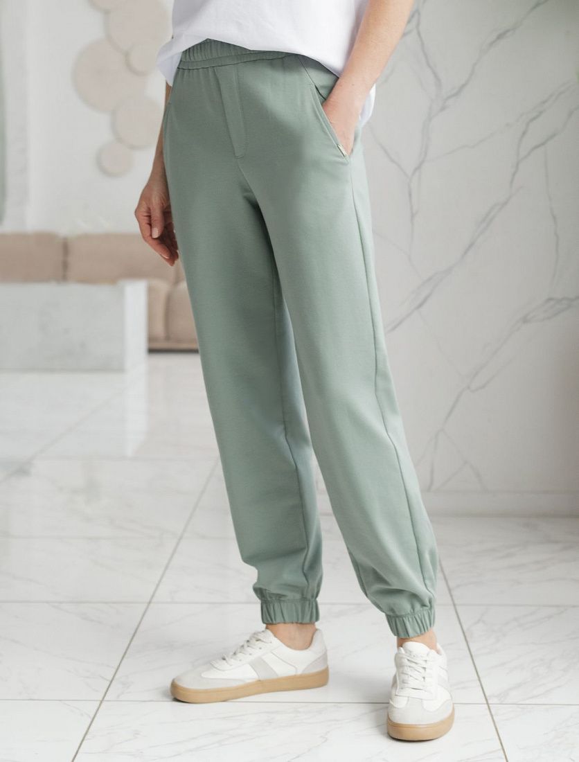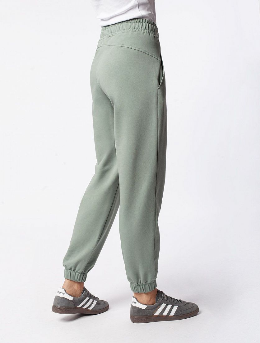 Брюки выполнены из эластичного футера двухнитки. Изделие дополнено боковыми карманами с фирменным логотипом бренда. Пояс на резинке регулируется потайным хлопковым шнурком. Эластан в составе гарантирует комфорт и формоустойчивость. Модель сочетается в костюме с свитшотом D49.072 и паркой D49.076