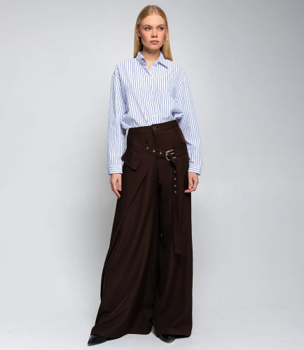 Брюки – это одежда, которая подчеркивает женственность каждой представительницы прекрасного пола. Модель брюк с асимметричным поясом отлично подойдет для любого сезона. Их выбирают покупательницы, которые ценят сочетание качества и цены. Фасон подчеркивает привлекательность фигуры. Производитель знает, как разработать стильные и модные решения. Для пошива использована ткань 65% полиэстер и 35% хлопок, которая характеризуется отличным качеством. Даже после многих стирок изделие не потеряет первоначальной красоты. Вы обязательно будете носить их с радостью. Обратите внимание на цвет. Он является насыщенным и полностью соответствует фотографии на сайте. Чтобы вы были уверены в размере, мы представили на странице таблицу. Воспользовавшись ею, вы сможете сами обмерить себя и удостовериться. Установленная нами цена является доступной. Не откажите себе в удовольствии быть элегантной! Рост модели: 173, параметры: 84-58-89.