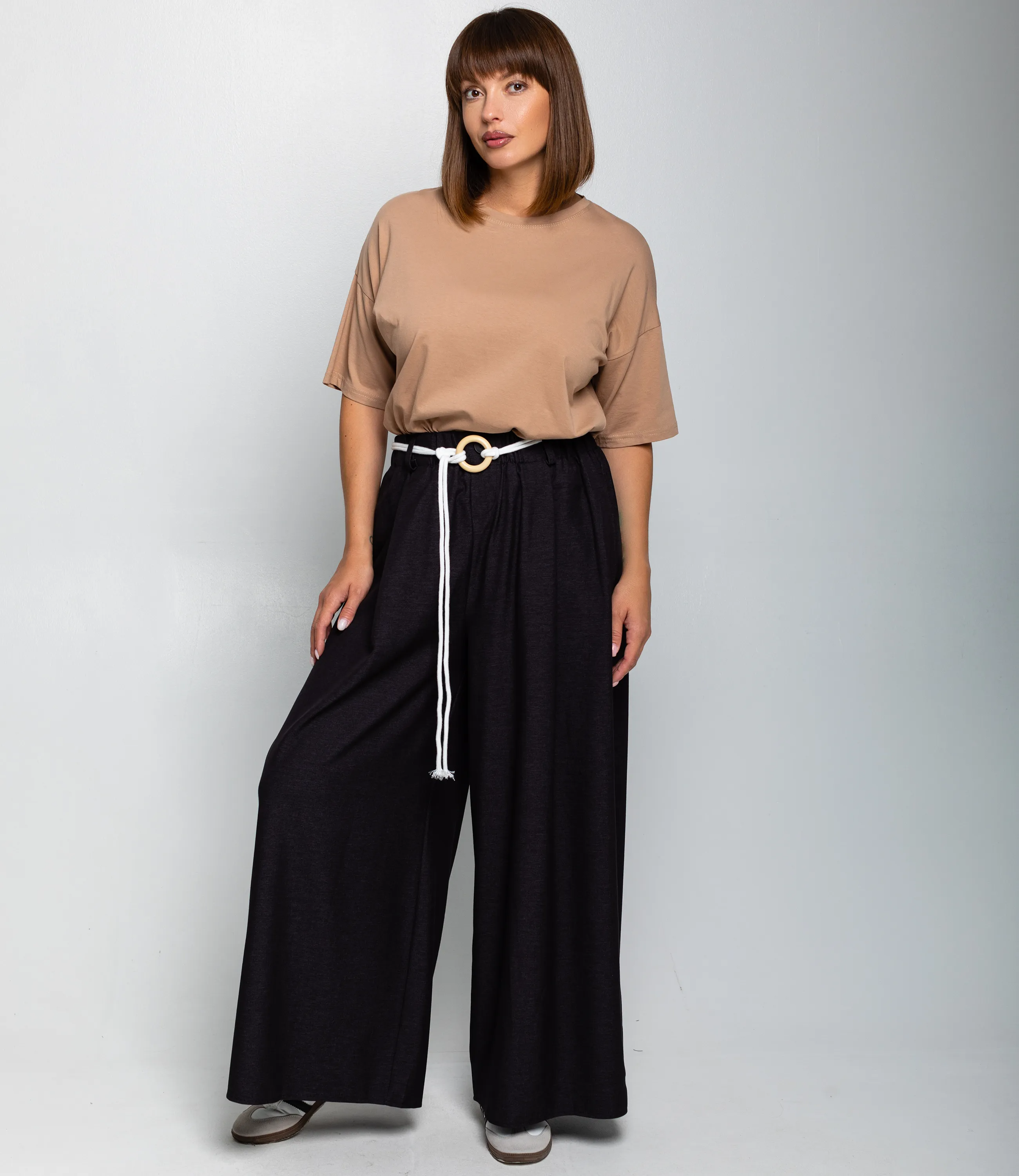 Широкие классические брюки — это основа стильного и элегантного гардероба каждой женщины. Эта модель идеально подходит для создания как повседневного, так и делового образа. Состав ткани — 80% хлопка и 20% полиэстера — обеспечивает великолепное сочетание комфорта и прочности. Брюки приятно облегают тело, не стесняя движений, и позволяют чувствовать себя уверенно в любой ситуации. Их широкий крой создает эффектный силуэт, подчеркивая женственность и грациозность фигуры. Эти брюки легко комбинировать с различными блузами, свитерами и жакетами, что делает их универсальным выбором для любого сезона. А необычный пояс шнурок добавляет яркости. Они идеально подойдут для работы в офисе или вечерней прогулки по городу. Цвет брюков остается насыщенным и глубоким даже после множества стирок, что делает их практичными в повседневной жизни. Мы также предоставили на странице таблицу с размерами, чтобы помочь вам без труда выбрать идеальный вариант. Предложенная цена делает эти стильные классические брюки доступными для каждой модницы, желающей добавить что-то новое в свой гардероб. Не упустите возможность предложить своим клиенткам эти шикарные брюки, которые станут незаменимыми в их коллекции. С ними каждая женщина сможет выглядеть прекрасно и чувствовать себя на вершине модного Олимпа!