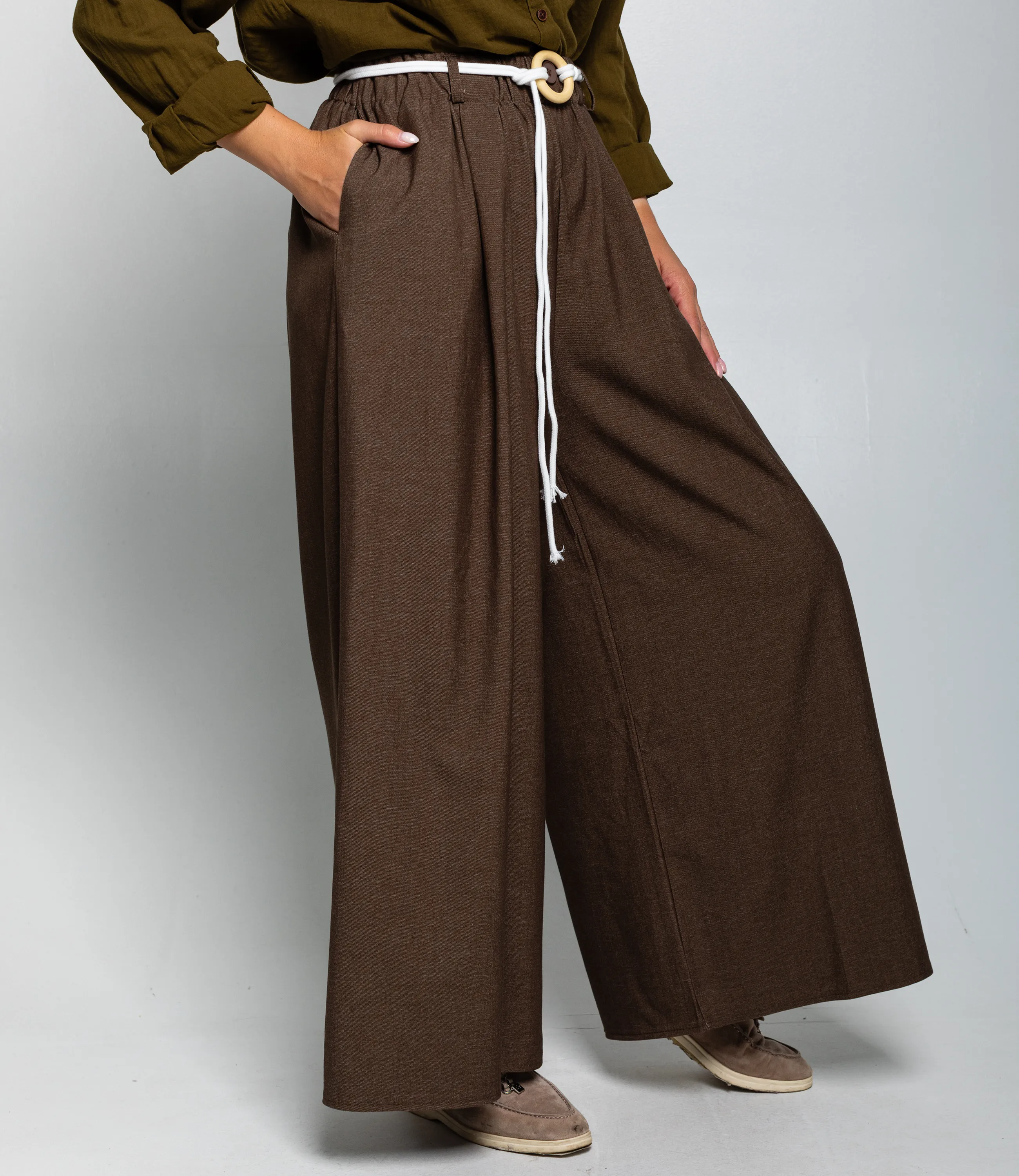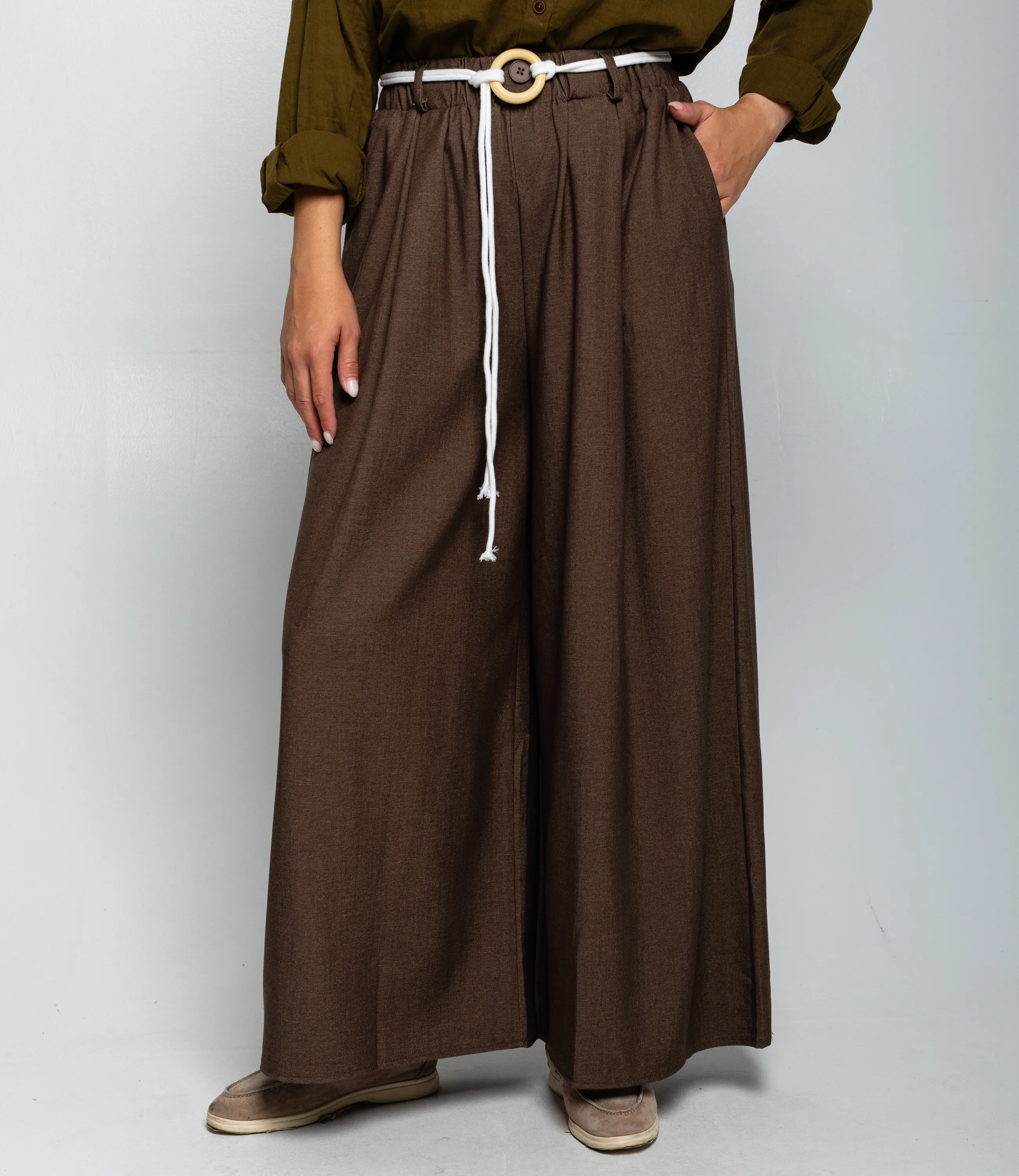 Широкие классические брюки — это основа стильного и элегантного гардероба каждой женщины. Эта модель идеально подходит для создания как повседневного, так и делового образа. Состав ткани — 80% хлопка и 20% полиэстера — обеспечивает великолепное сочетание комфорта и прочности. Брюки приятно облегают тело, не стесняя движений, и позволяют чувствовать себя уверенно в любой ситуации. Их широкий крой создает эффектный силуэт, подчеркивая женственность и грациозность фигуры. Эти брюки легко комбинировать с различными блузами, свитерами и жакетами, что делает их универсальным выбором для любого сезона. А необычный пояс шнурок добавляет яркости. Они идеально подойдут для работы в офисе или вечерней прогулки по городу. Цвет брюков остается насыщенным и глубоким даже после множества стирок, что делает их практичными в повседневной жизни. Мы также предоставили на странице таблицу с размерами, чтобы помочь вам без труда выбрать идеальный вариант. Предложенная цена делает эти стильные классические брюки доступными для каждой модницы, желающей добавить что-то новое в свой гардероб. Не упустите возможность предложить своим клиенткам эти шикарные брюки, которые станут незаменимыми в их коллекции. С ними каждая женщина сможет выглядеть прекрасно и чувствовать себя на вершине модного Олимпа!