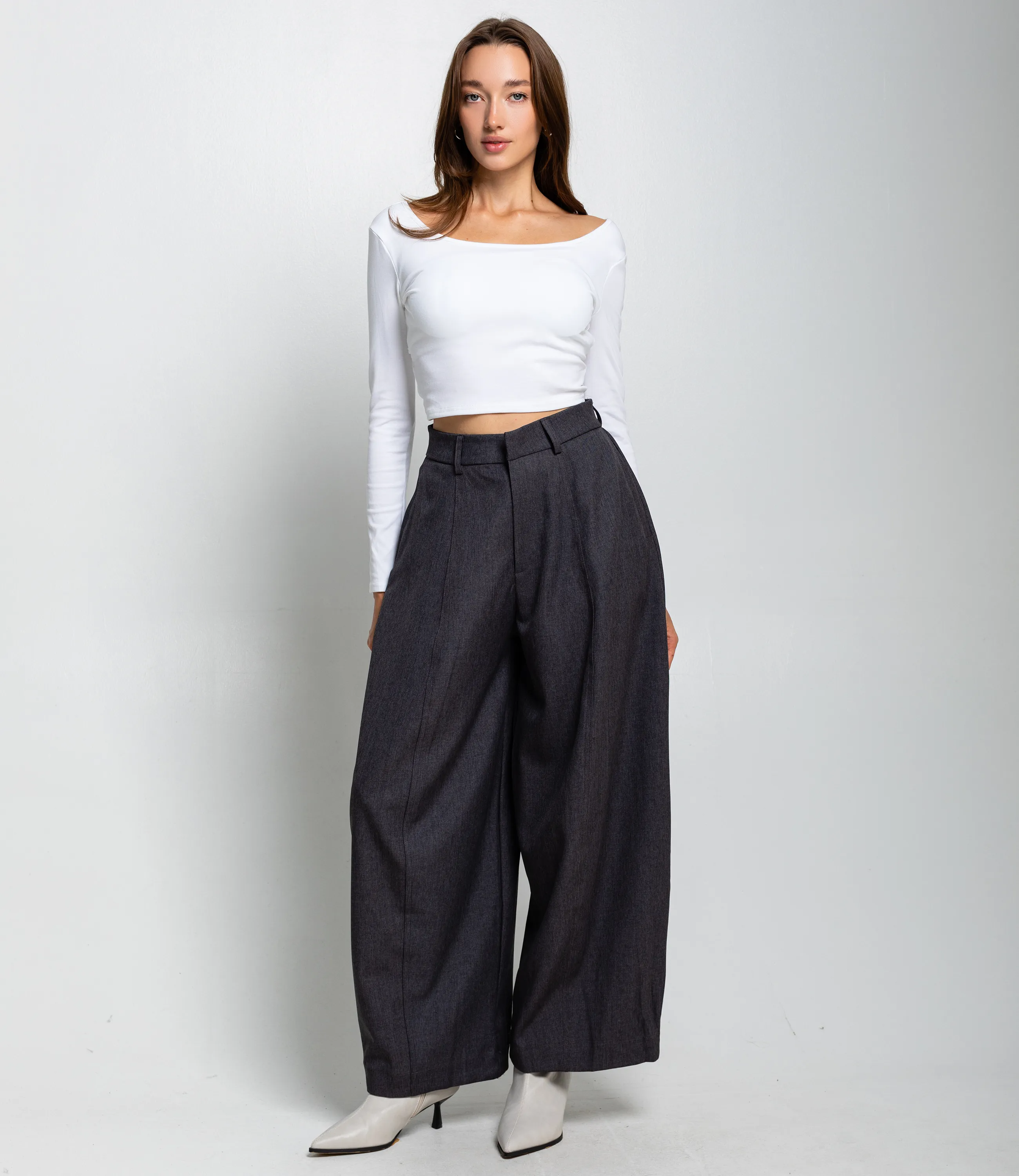 Брюки — это незаменимый элемент гардероба, который подчеркивает стиль и индивидуальность каждой женщины. Брюки высокая посадка, свободный широко‑прямой крой с лёгким объёмом по бедрам и голеням, напоминающий палаццо. Строчки по средним линиям штанин, аккуратные втачные карманы по бокам, отсутствие накладных карманов и яркой фурнитуры для минималистичного вида. Подходит с приталенным топом или укороченным пиджаком, ботильонами или классическими туфлями; стиль можно смягчить лёгким свитером. Состав: 100% полиэстер. Штанины прямые с заметным объёмом и мягкими складками, плавно переходят в эластичные манжеты внизу, которые собирают ткань и создают характерную форму. Обратите внимание на современный крой и удобную посадку, которые ваши покупатели оценят по достоинству. Мы также предоставили таблицу размеров на нашем сайте, чтобы все могли выбрать идеальный вариант. Наша цена является приемлемой для оптовых покупателей, что делает эту модель отличным дополнением к вашему ассортименту. Дайте вашим клиентам возможность выглядеть стильно и чувствовать себя комфортно с этими брюками, ведь каждая женщина заслуживает выражать свой индивидуальный стиль! Рост 168 см, 85-63-92. Вы можете заказать онлайн презентацию на интересующие Вас модели. Наши менеджеры свяжутся с Вами и проведут индивидуальную видеотрансляцию, помогут составить заказ и ответят на Ваши вопросы.