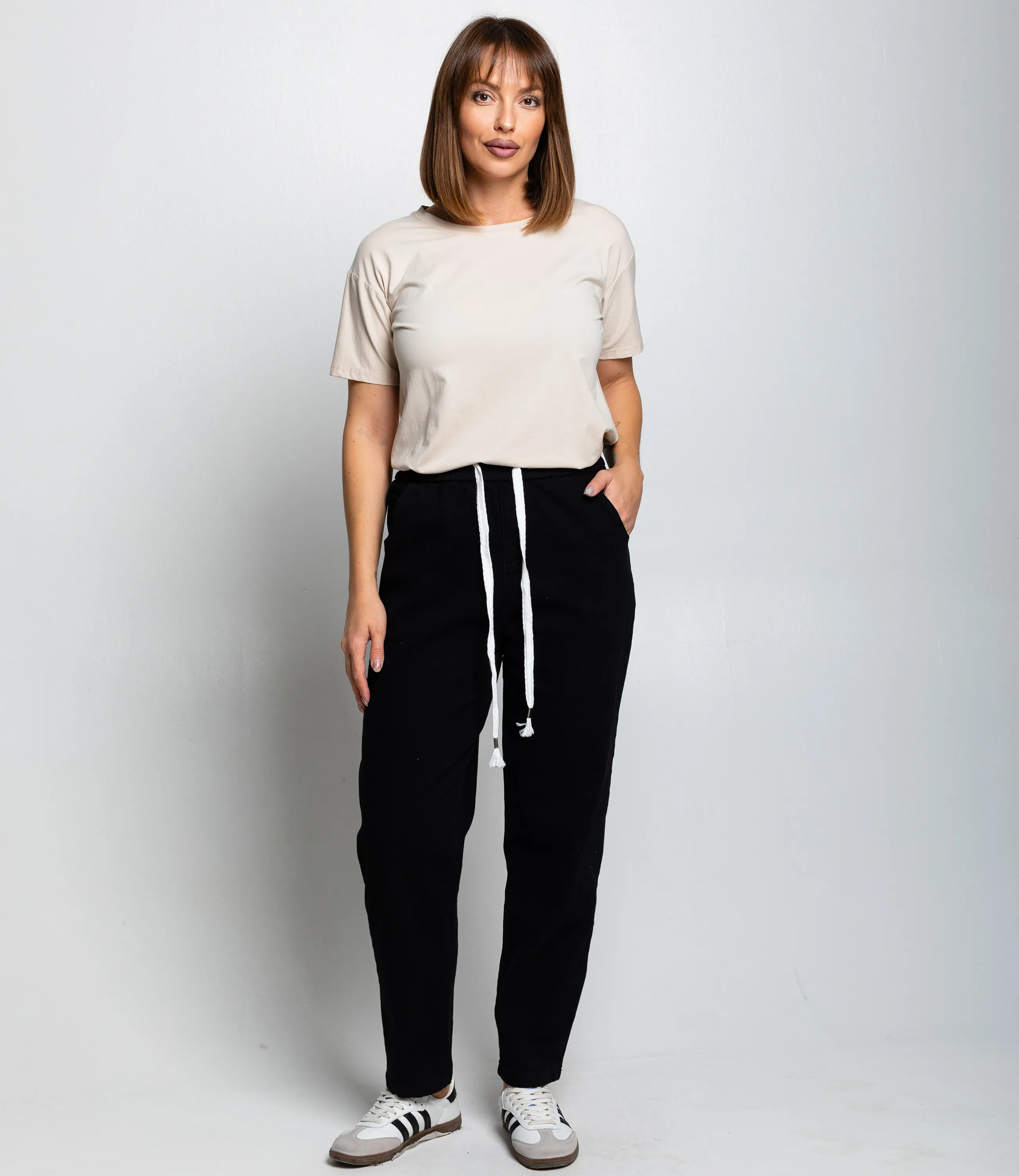 Эти брюки отличный выбор для ваших покупателей, которые ценят комфорт и стиль в повседневной одежде. Выполненные из 100% хлопка, они обладают невероятной мягкостью и легкостью, что делает их идеальными для любого сезона. Расслабленный и удобный стиль брюков обеспечен благодаря резинке на поясе и шнурку для регулировки, что позволяет добиться идеальной посадки на любой фигуре. Прямой крой гарантирует универсальность, позволяя носить их как с облегающими топами, так и с более свободными свитерами. Эти брюки легко комбинируются с кроссовками для создания непринужденного образа или с ботинками на платформе для более стильного внешнего вида. Такой комплект идеально подходит для прогулок по городу или casual встреч с друзьями. На странице вашего сайта представлена таблица размеров, что поможет вашим клиентам легко подобрать идеальный вариант. Доступная цена делает эти брюки привлекательными для широкой аудитории, что позволит вам привлечь больше покупателей. Добавьте в ассортимент вашего магазина этот стильный и функциональный элемент гардероба, чтобы ваши клиенты всегда чувствовали себя уверенно и комфортно!