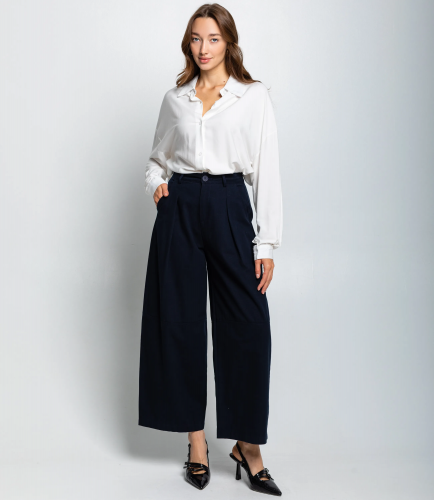 Брюки — это часть гардероба, которая подчёркивает привлекательность и индивидуальность каждой покупательницы. Модель выполнена с высокой посадкой и широкими укороченными штанинами, защипы на талии добавляют объёма и создают элегантную драпировку, а классическая застёжка на пуговицу и молнию обеспечивает надёжность и удобство в носке. Для пошива использована ткань 65% хлопок 30% полиэстер 5% эластан, сочетание натурального комфорта хлопка, прочности и стойкости к смятию полиэстера и лёгкой эластичности эластана гарантирует отличную посадку, сохранение формы и минимальную деформацию при активной эксплуатации. Плотная структурированная ткань придаёт брюкам строгую форму и аккуратный силуэт, функциональные боковые карманы и шлевки для ремня повышают практичность модели, а аккуратная отделка делает её уместной и в офисном, и в повседневном гардеробе. Для оптовых покупателей это товар с высокой рентабельностью и быстрой оборачиваемостью: универсальная посадка упрощает формирование размерного ряда, прочный состав снижает процент брака и возвратов, а актуальный крой работает в нескольких форматах мерчандайзинга. Рекомендуем позиционировать брюки в капсулах «офисный минимализм» и «городской комфорт», комбинировать их с блузами, лёгкими пиджаками и мокасинами или кроссовками, предлагать комплекты «верх + низ» для увеличения среднего чека и наборы из ключевых оттенков для ускорения продаж. Цвета соответствуют фото в карточке товара, на странице размещена подробная таблица размеров для точного подбора, для уверенности по запросу предоставляем образцы для оценки качества. По коммерческим запросам готовы предложить гибкие минимальные партии адаптацию под ваш ассортимент готовые POS материалы фотоконтент и оперативную логистику — брюки, которые эффектно выглядят на витрине и стабильно приносят прибыль вашему магазину. Рост 168 см, 85-63-92.