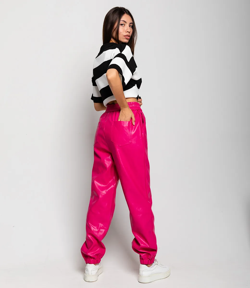 Брюки джоггеры из эко-кожи добавят в образ дерзости. Супермодная можель представленна в нескольких цветах, благодаря чему можно разнообразить свой гардероб под любой образ.