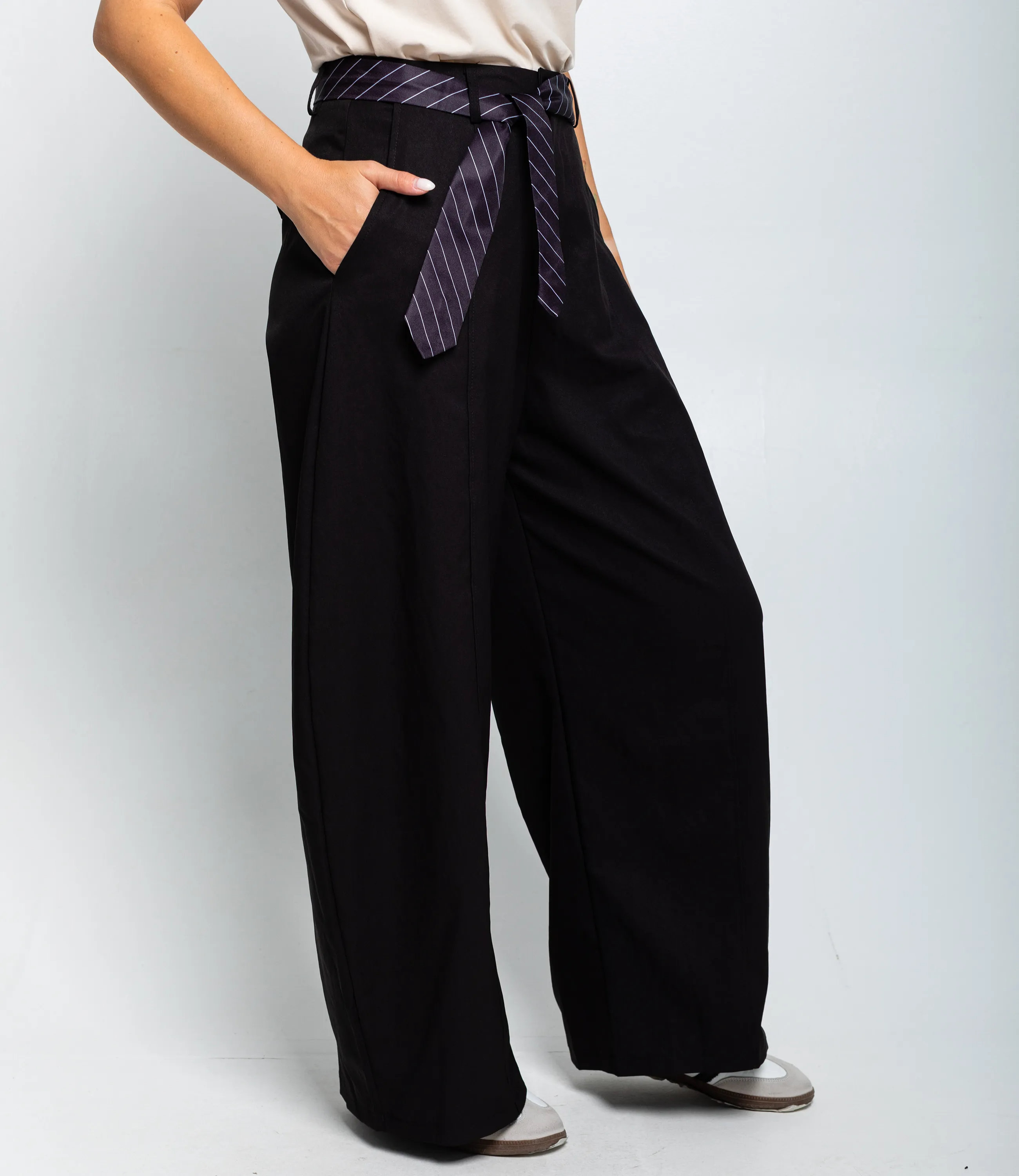 Брюки — это незаменимый элемент гардероба, который подчеркивает стиль и индивидуальность каждой женщины. имеют высокий пояс с втачным пояском, на котором лежит декоративный длинный пояс‑шнур, продетый через петли и завязанный спереди, создавая акцент в талии. Фасон свободный, широкие прямые штанины от бедра до низа, с лёгкой драпировкой по бокам и вертикальными центральными швами на каждой штанине, придающими стройность линии. Низ брюк прямой, без дополнительных манжет, обработан простым подшивом. Состав: 65% полиэстер, 30% хлопок, 5% эластан. Обратите внимание на современный крой и удобную посадку, которые ваши покупатели оценят по достоинству. Мы также предоставили таблицу размеров на нашем сайте, чтобы все могли выбрать идеальный вариант. Наша цена является приемлемой для оптовых покупателей, что делает эту модель отличным дополнением к вашему ассортименту. Дайте вашим клиентам возможность выглядеть стильно и чувствовать себя комфортно с этими брюками, ведь каждая женщина заслуживает выражать свой индивидуальный стиль!