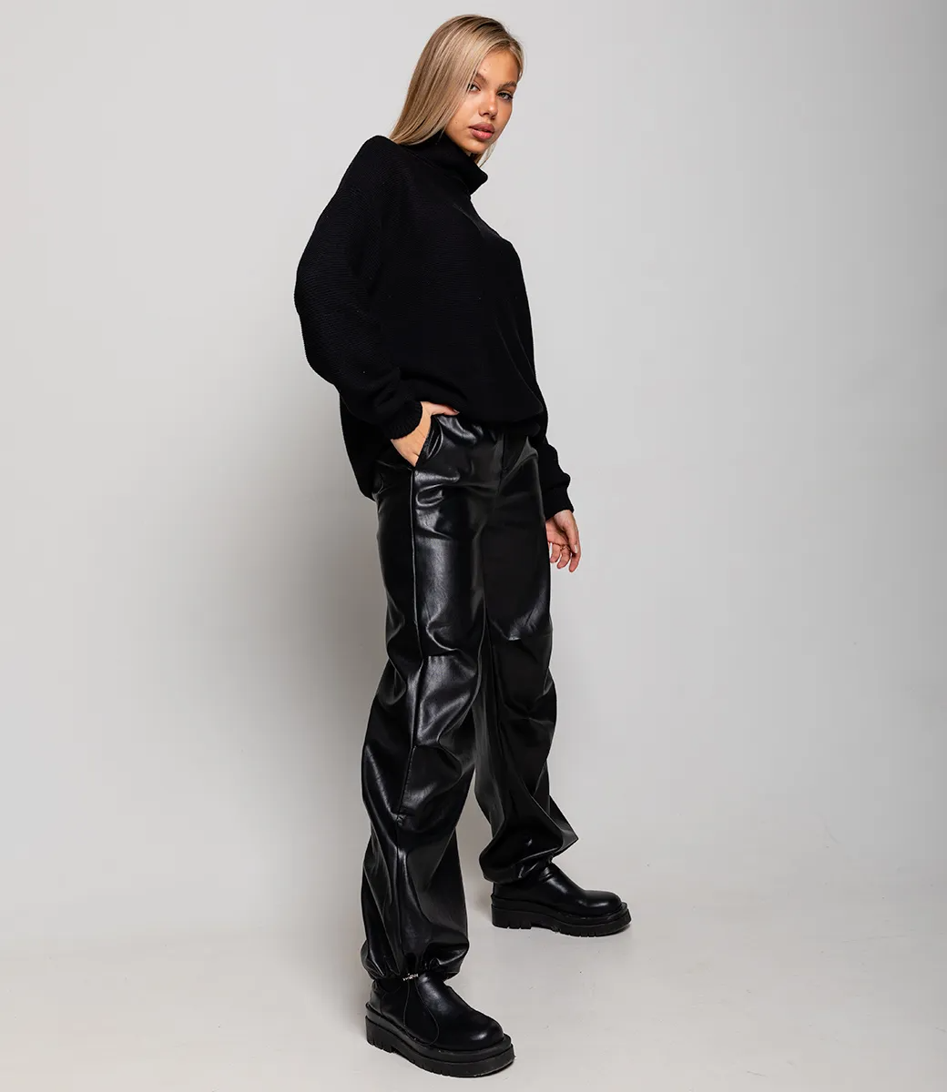 Брюки из эко-кожи– атрибут женского гардероба, с помощью которого можно создавать эффектные образы, но при этом чувствовать комфорт.