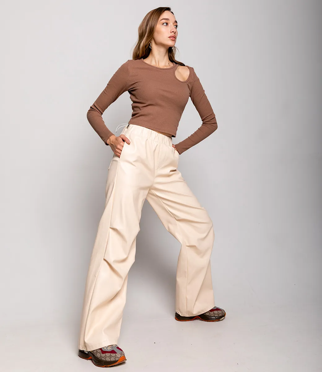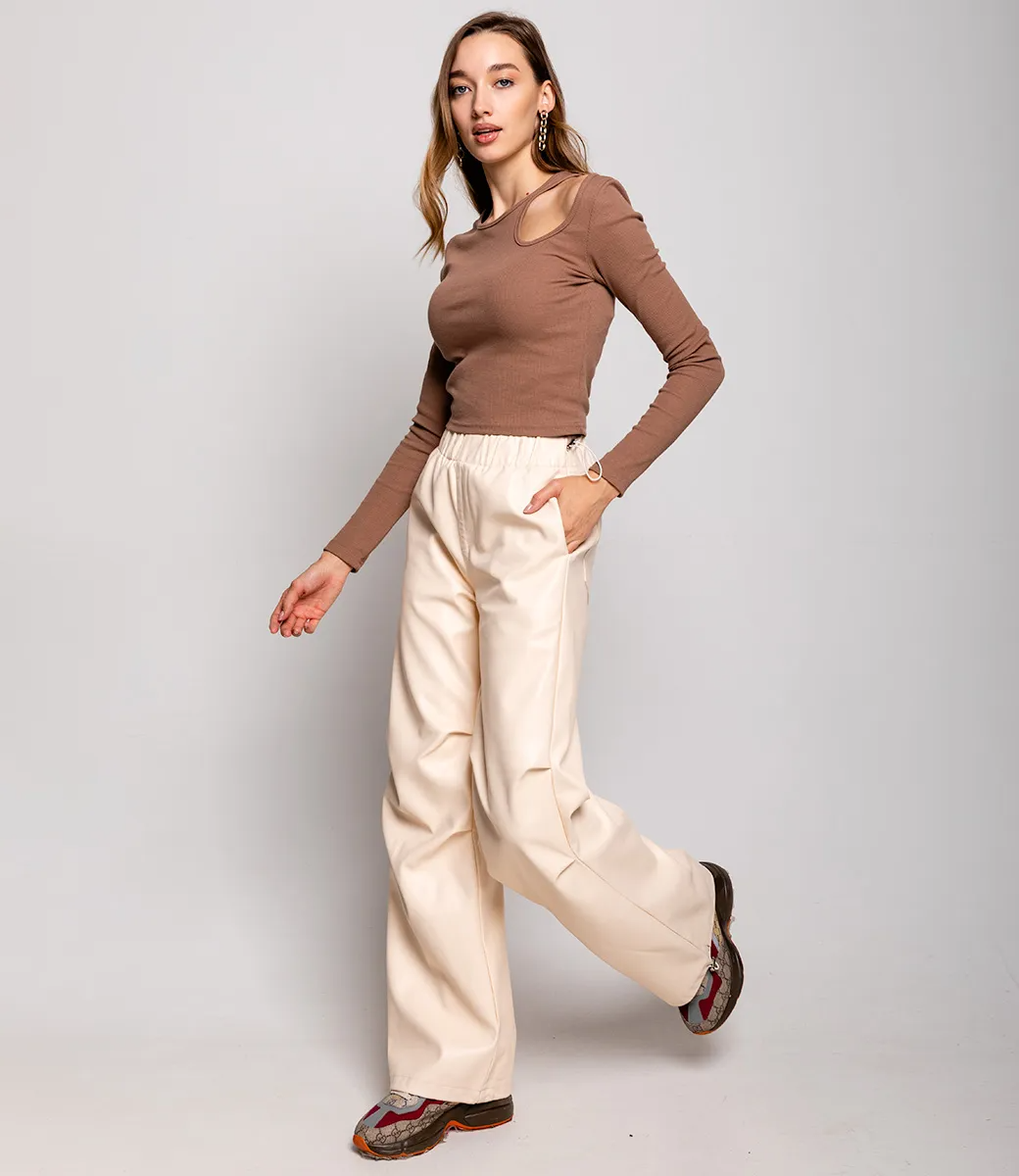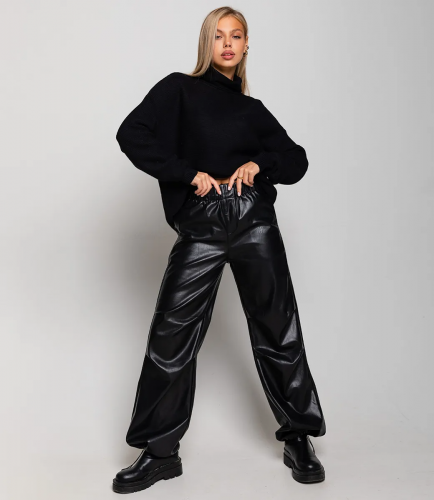 Брюки из эко-кожи– атрибут женского гардероба, с помощью которого можно создавать эффектные образы, но при этом чувствовать комфорт.