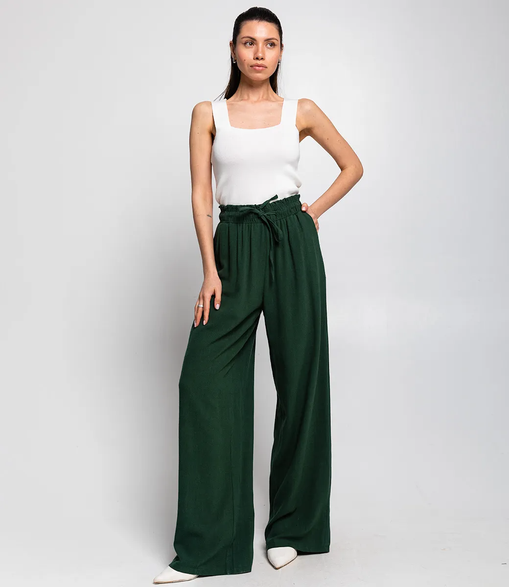 Брюки – это важная часть гардероба, которая подчеркивает привлекательность каждой женщины. Эта модель идеально подходит для летнего сезона благодаря своему свободному прямому крою и эластичному поясу с завязками, что обеспечивает комфортную посадку. Широкие штанины придают изделию расслабленный стиль, а легкая и непрозрачная ткань делает брюки идеальными для теплой погоды. Покупательницы, которые ценят сочетание качества и доступной цены, выбирают именно эту модель. Фасон подчеркивает красоту фигуры, а производитель знает, как разработать стильные и модные решения, которые порадуют даже самых требовательных клиентов. Для изготовления использована ткань 50% хлопка и 50% льна, характеризующаяся отличным качеством. Даже после многократных стирок брюки не потеряют своей привлекательности и уникальности. Вы будете с радостью носить их в разные сезоны, радуясь своему выбору. Обратите внимание на детали. Они полностью соответствуют изображению на сайте, а предлагаемая цена остается приемлемой для оптовых покупателей. У нас есть таблица размеров на странице, чтобы вы могли легко подобрать нужный размер. Не упустите возможность предложить своим клиентам не просто брюки, а истинный стиль и комфорт. Подарите своим покупателям возможность чувствовать себя элегантными и неповторимыми! Рост модели 164, 83-61-89.