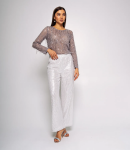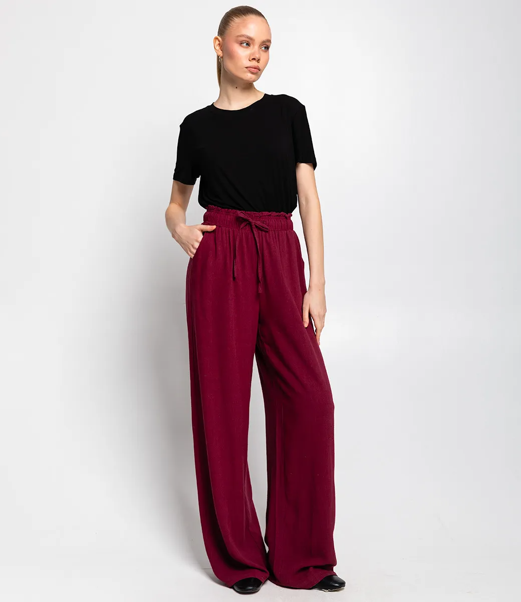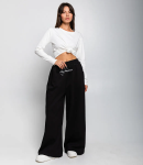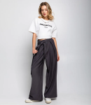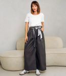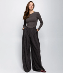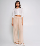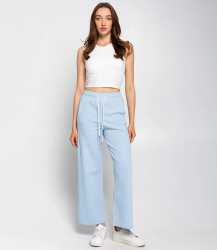 Брюки – это важная часть гардероба, которая подчеркивает привлекательность каждой женщины. Эта модель идеально подходит для летнего сезона благодаря своему свободному прямому крою и эластичному поясу с завязками, что обеспечивает комфортную посадку. Широкие штанины придают изделию расслабленный стиль, а легкая и непрозрачная ткань делает брюки идеальными для теплой погоды. Покупательницы, которые ценят сочетание качества и доступной цены, выбирают именно эту модель. Фасон подчеркивает красоту фигуры, а производитель знает, как разработать стильные и модные решения, которые порадуют даже самых требовательных клиентов. Для изготовления использована ткань 50% хлопка и 50% льна, характеризующаяся отличным качеством. Даже после многократных стирок брюки не потеряют своей привлекательности и уникальности. Вы будете с радостью носить их в разные сезоны, радуясь своему выбору. Обратите внимание на детали. Они полностью соответствуют изображению на сайте, а предлагаемая цена остается приемлемой для оптовых покупателей. У нас есть таблица размеров на странице, чтобы вы могли легко подобрать нужный размер. Не упустите возможность предложить своим клиентам не просто брюки, а истинный стиль и комфорт. Подарите своим покупателям возможность чувствовать себя элегантными и неповторимыми! Рост модели: 173, параметры: 84-58-89.