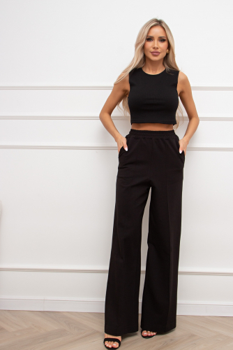 Стильные брюки из костюмной ткани. Комфортную посадку на талии обеспечивает эластичный пояс на резинке по спинке. Пояс дополнен шлевками. Модель имеет застежку - гульфик на пуговицу и молнию. Перед дополнен функциональными карманами. Брючины оканчиваются широкими манжетами на резинке. Пояс из основной ткани в комплекте.