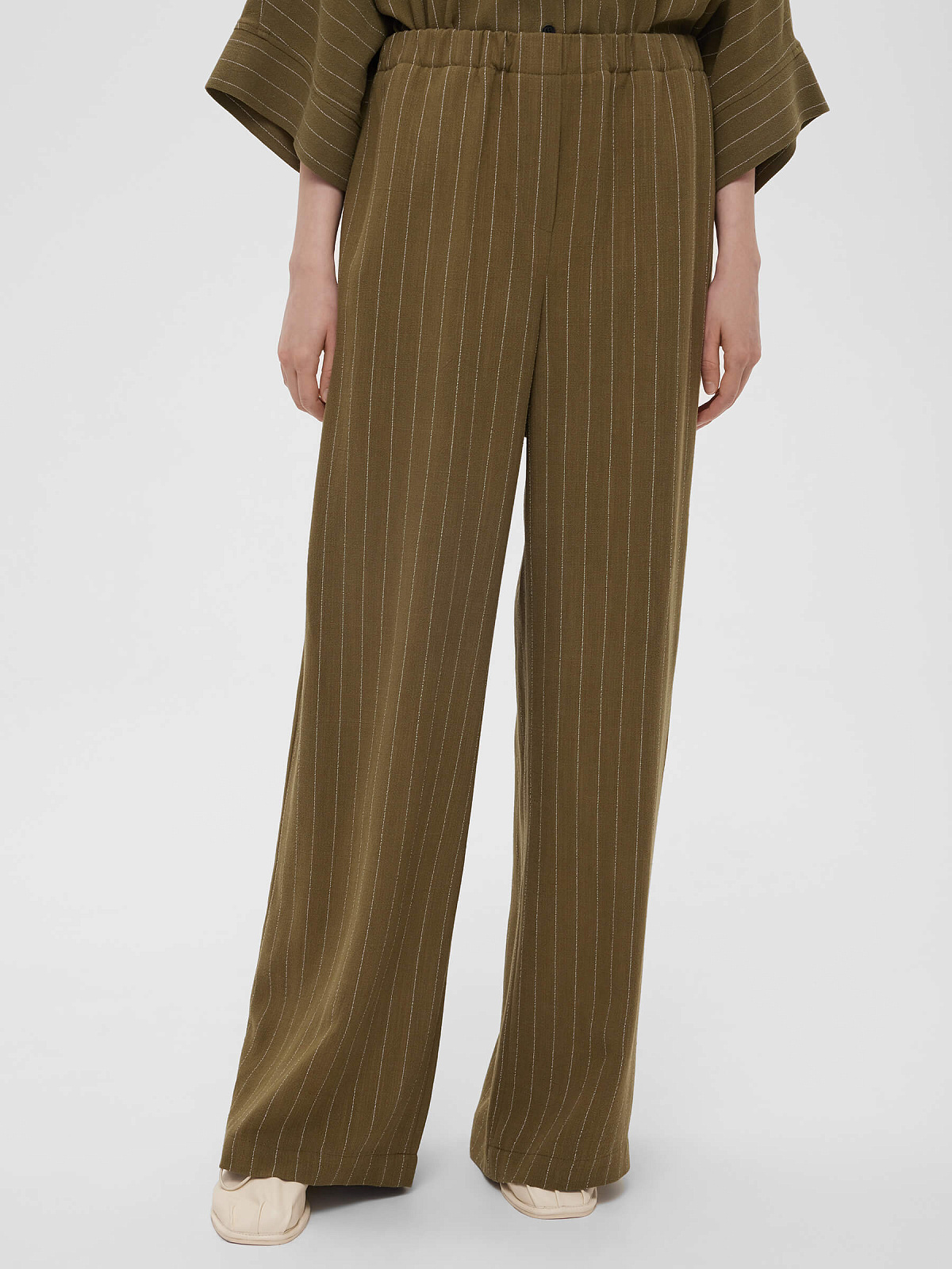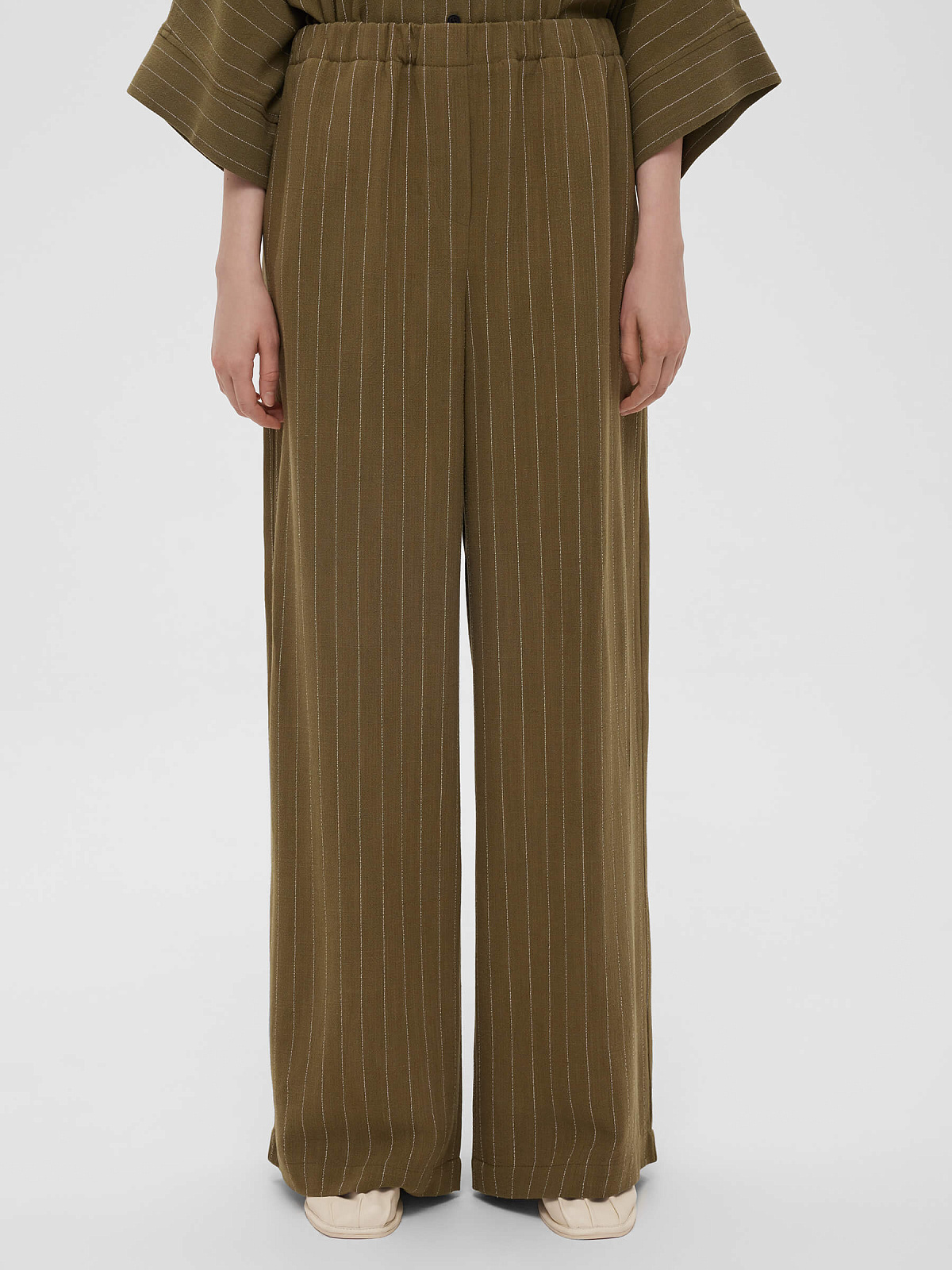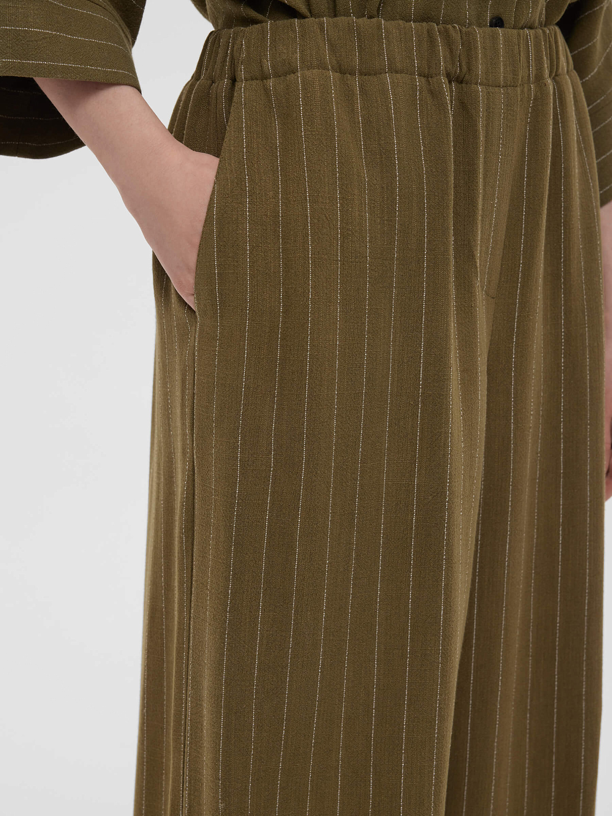 1970р4925рБрюки льняные на резинке в полоску, хаки