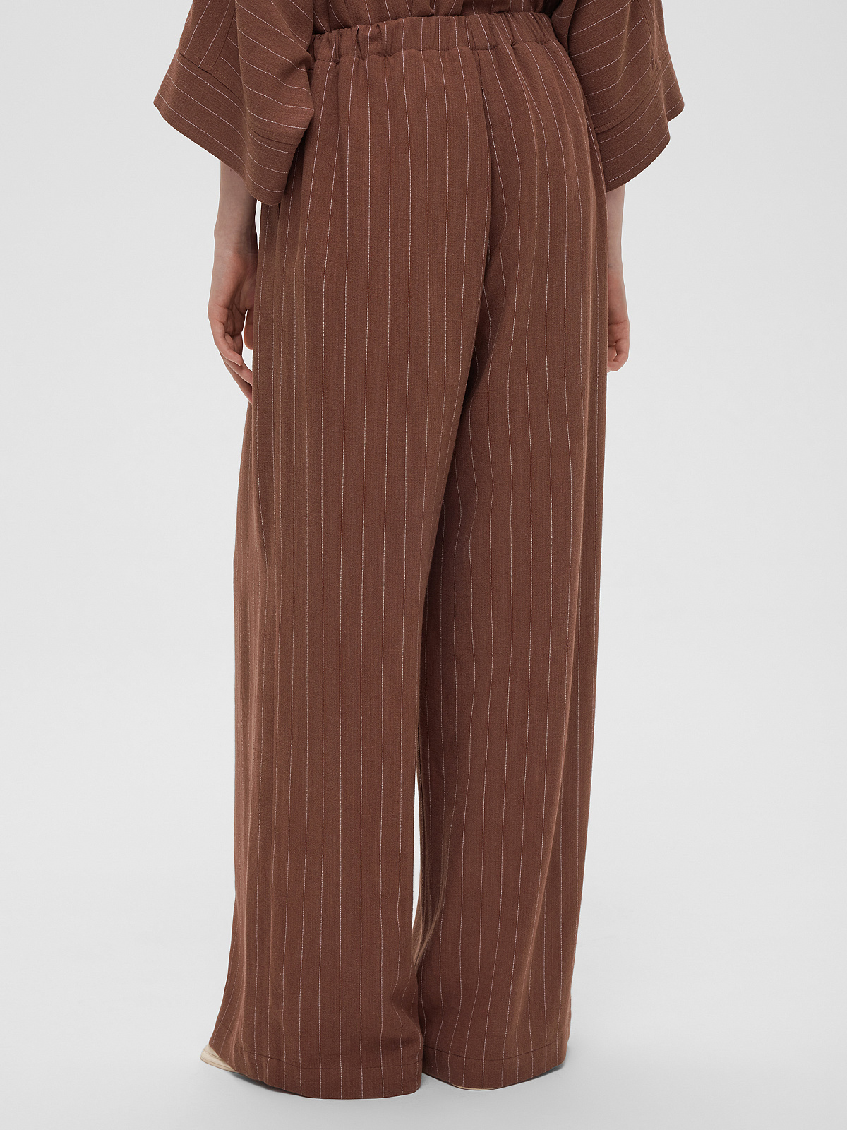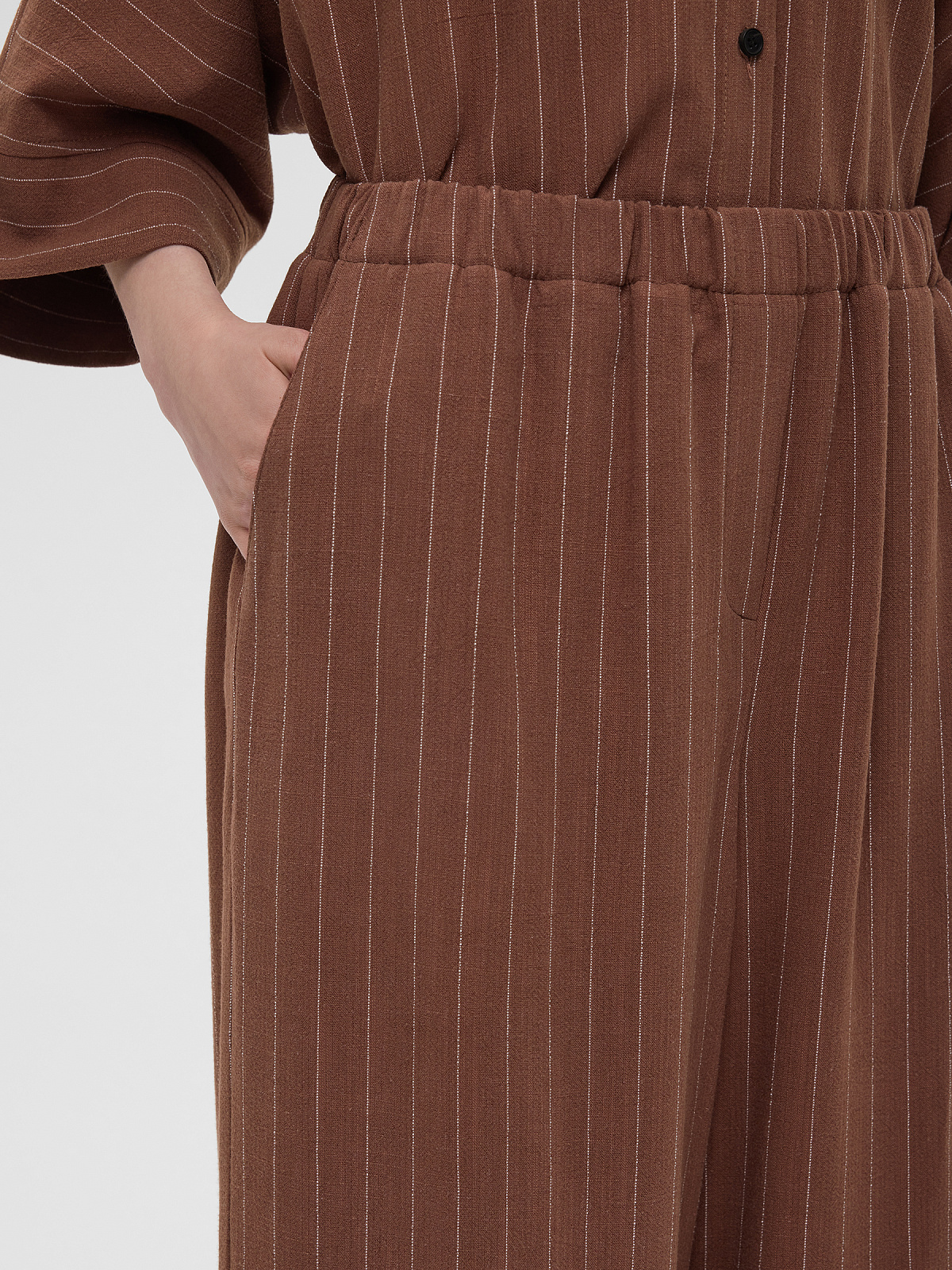 1970р4925рБрюки льняные на резинке в полоску, коричневый