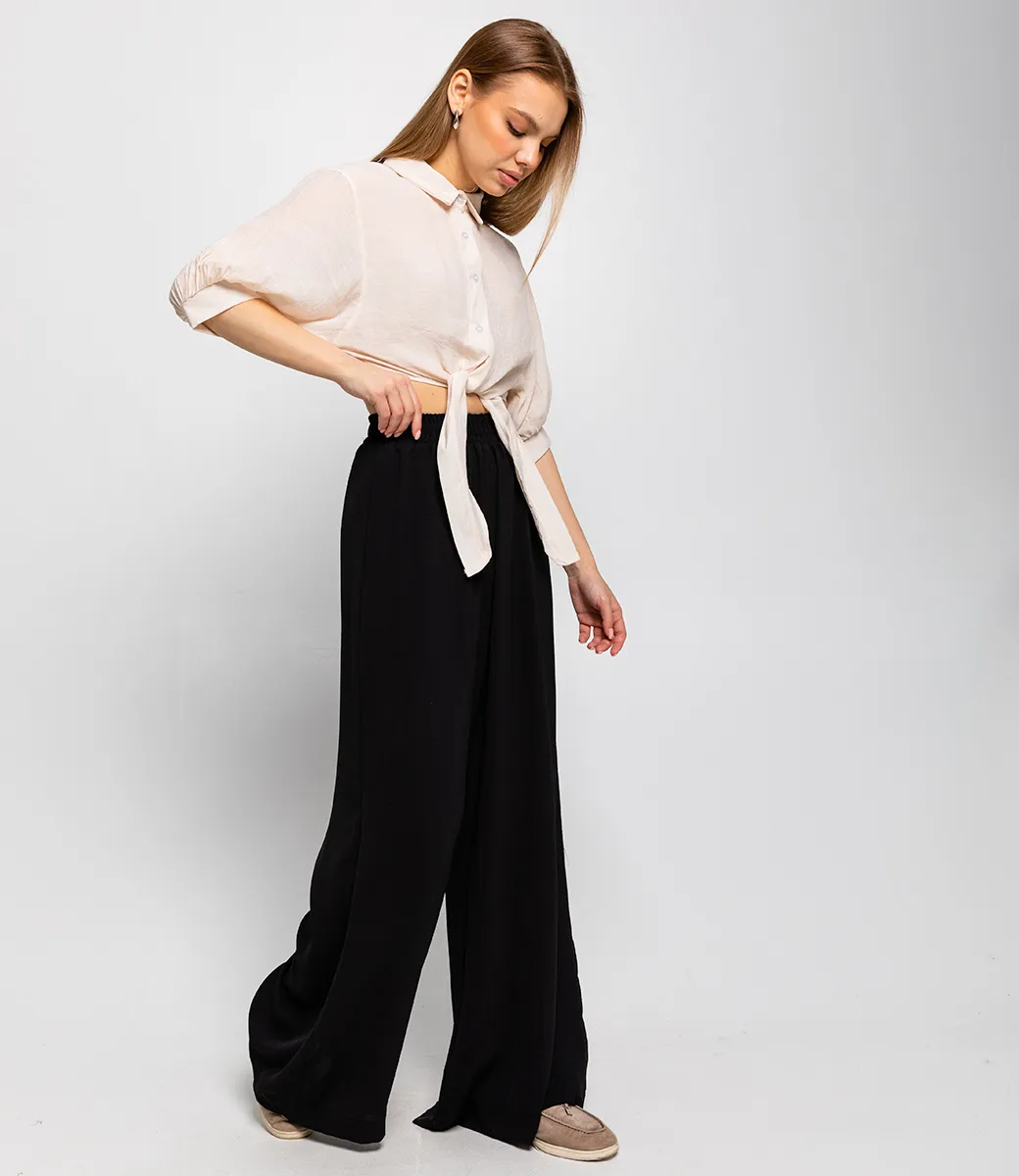 Стильные брюки с поясом на резинке помогут создать элегантный и женственный образ. Свободный крой данного изделия дарит комфорт в носке. Рост 168, 89-63-90.