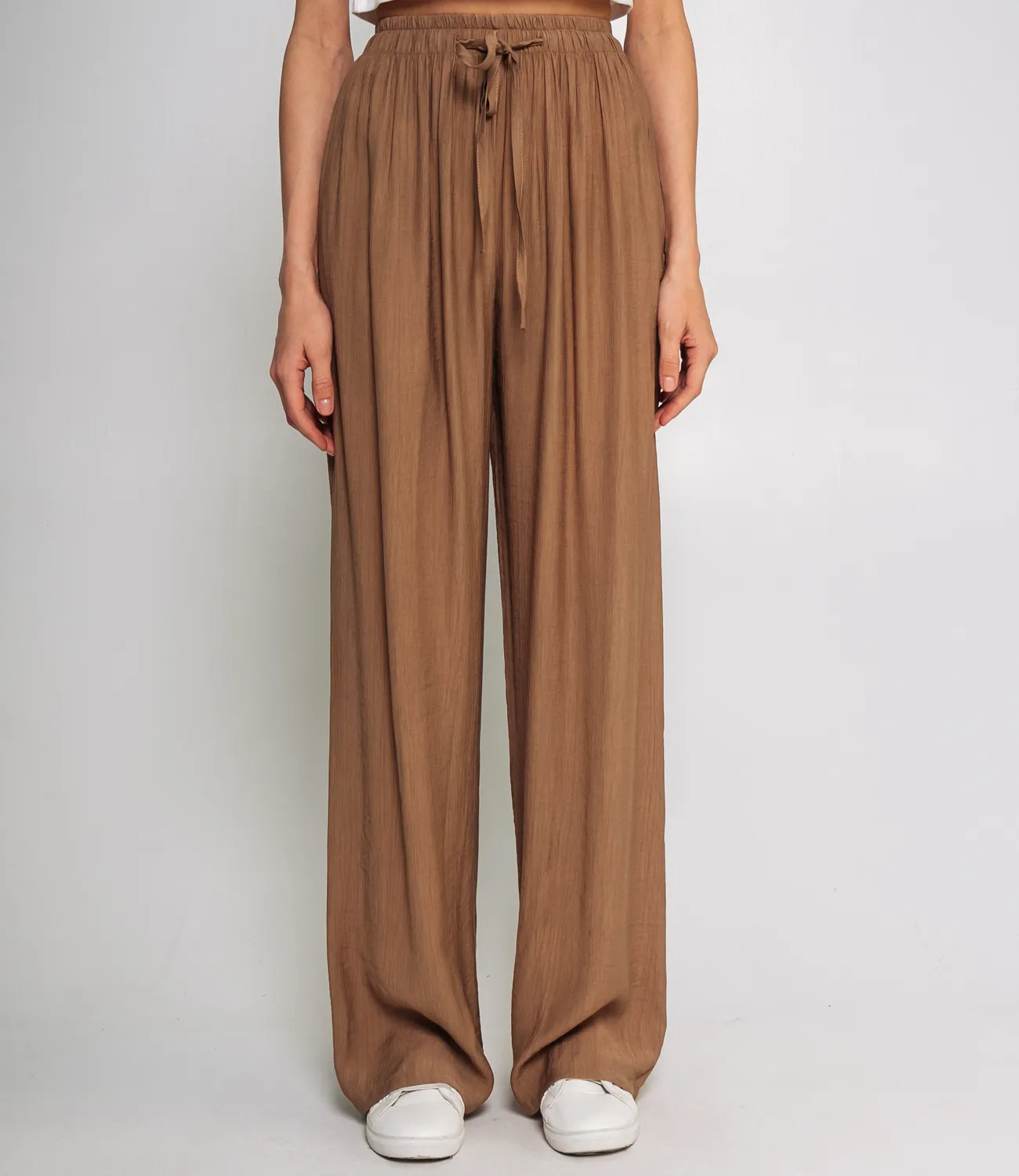 Брюки – это незаменимая часть гардероба, которая подчеркивает женственность и уникальность каждой представительницы прекрасного пола. Брюки выполнены в свободном прямом крое с эластичным поясом и завязками для регулировки посадки. Изделие изготовлено из 100% полиэстера. Ткань легкая, воздушная, не мнется и сохраняет форму, что делает брюки удобными и практичными для повседневной носки. Для удобства мы предоставили таблицу размеров на нашем сайте, чтобы ваши покупатели могли точно подобрать подходящий размер. Предложенная нами цена является доступной и выгодной для оптовых покупателей, что делает эти брюки отличным дополнением к ассортименту вашего магазина. Подарите своим клиентам удовольствие носить стильные и комфортные брюки, которые подойдут для любых летних дней!