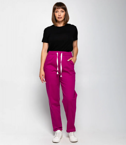 Брюки — это незаменимый элемент гардероба, который объединяет в себе комфорт и стиль, подчеркнув элегантность каждой женщины. Эта модель станет изюминкой вашего магазина, привлекая внимание покупателей своим безупречным дизайном и продуманными деталями. Брюки идеально подходят не только для повседневной носки, но и для создания стильных образов на различные мероприятия. Изготовленные на 100% из полиэстера, эти брюки обладают превосходными качественными характеристиками: они легкие, прочные и отлично держат форму. Мягкая струящаяся ткань плавно ниспадает от талии до низа, создавая впечатление невесомости и элегантности. Модель имеет высокую посадку и широкие штанины, что придает образу изысканность и комфорт одновременно. Свободный крой позволяет с легкостью двигаться и чувствовать себя уверенно в любых ситуациях. Узкий пояс без видимых застёжек или украшений подчеркивает лаконичность модели, сохраняет стильный и современный вид. Длина брюк продумана таким образом, чтобы они свободно ложились на обувь, создавая эффект легкости и динамики. Такая модель прекрасно сочетает в себе элементы как повседневного, так и более формального стиля, что делает её универсальным выбором для любой женщины. Мы предлагаем разнообразие цветов, чтобы каждая покупательница могла найти свой идеальный вариант. Для удобства ваших клиентов на сайте представлена таблица размеров, что поможет им легко и быстро выбрать самые подходящие брюки. Предложенная нами цена делает эти брюки доступными для оптовых закупок, позволяя вам выгодно обновить ассортимент вашего магазина. Подарите своим покупательницам возможность наслаждаться стилем и комфортом с этой великолепной моделью брюк, которая станет незаменимой частью их гардероба! Рост модели 168 см., 85-63-92.
