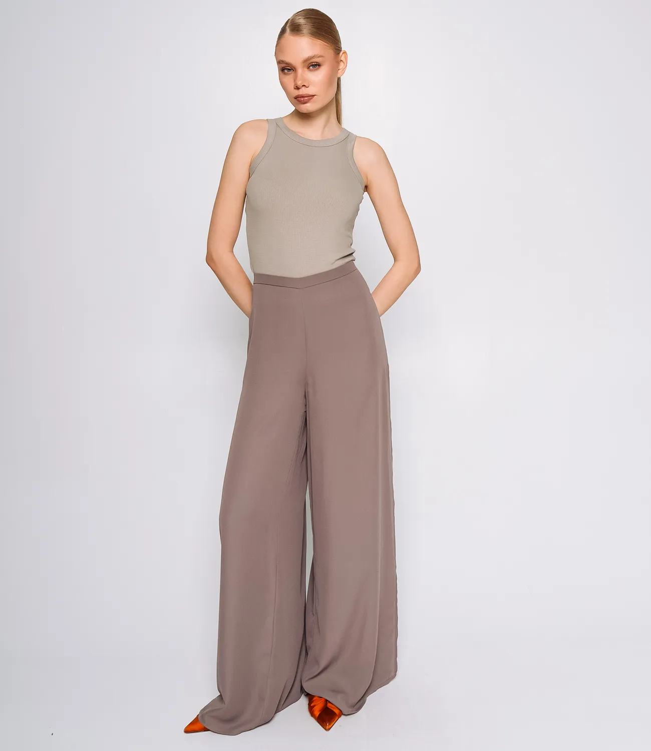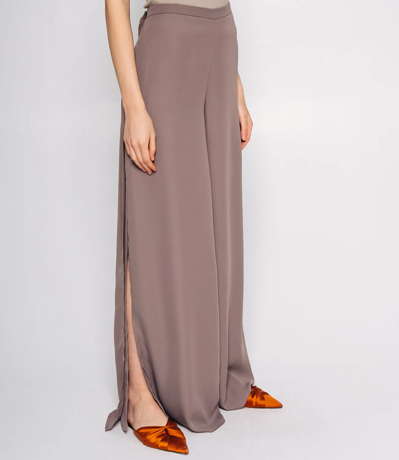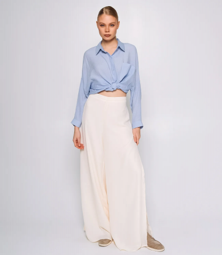 Брюки – это незаменимая часть гардероба, которая подчеркивает женственность и уникальность каждой представительницы прекрасного пола. Брюки с высокой талией, что визуально удлиняют ноги и подчеркивают фигуру. По бокам имеются разрезы, что прекрасно подойдёт для летного сезона и будут стильным акцентом любого образа. Эти брюки легко комбинируются с различными элементами одежды, что позволяет создавать стильные образы для любого случая. Производитель знает, как разработать стильные и комфортные решения, которые удовлетворяют потребности самых требовательных клиентов. Для пошива использована ткань из 100% полиэстер, которая характеризуется отличным качеством. Даже после множества стирок эти брюки сохранят свою первоначальную привлекательность и форму. Обратите внимание на цвет и текстуру ткани — они гармонично сочетаются с различными цветами и образами. Для удобства мы предоставили таблицу размеров на нашем сайте, чтобы ваши покупатели могли точно подобрать подходящий размер. Предложенная нами цена является доступной и выгодной для оптовых покупателей, что делает эти брюки отличным дополнением к ассортименту вашего магазина. Подарите своим клиентам удовольствие носить стильные и комфортные брюки, которые подойдут для любых летних дней! Рост модели: 173, параметры: 84-58-89.