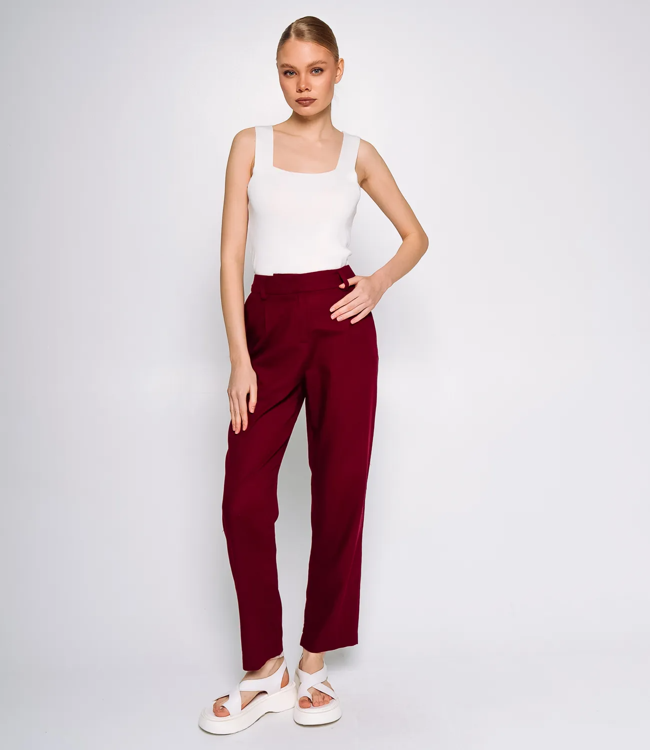 Брюки – это незаменимая часть гардероба, которая подчеркивает женственность и уникальность каждой представительницы прекрасного пола. Брюки имеют классический и элегантный вид, подходящие для различных случаев, как повседневных, так и более формальных. Брюки имеют высокую посадку, что помогает подчеркнуть талию и визуально удлиняет ноги. Эти брюки легко комбинируются с различными элементами одежды, что позволяет создавать стильные образы для любого случая. Производитель знает, как разработать стильные и комфортные решения, которые удовлетворяют потребности самых требовательных клиентов. Для пошива использована ткань 70% ацетат и 30% лен, которая характеризуется отличным качеством. Даже после множества стирок эти брюки сохранят свою первоначальную привлекательность и форму. Обратите внимание на цвет и текстуру ткани — они гармонично сочетаются с различными цветами и образами. Для удобства мы предоставили таблицу размеров на нашем сайте, чтобы ваши покупатели могли точно подобрать подходящий размер. Предложенная нами цена является доступной и выгодной для оптовых покупателей, что делает эти брюки отличным дополнением к ассортименту вашего магазина. Подарите своим клиентам удовольствие носить стильные и комфортные брюки, которые подойдут для любых летних дней! Рост модели: 173, параметры: 84-58-89.