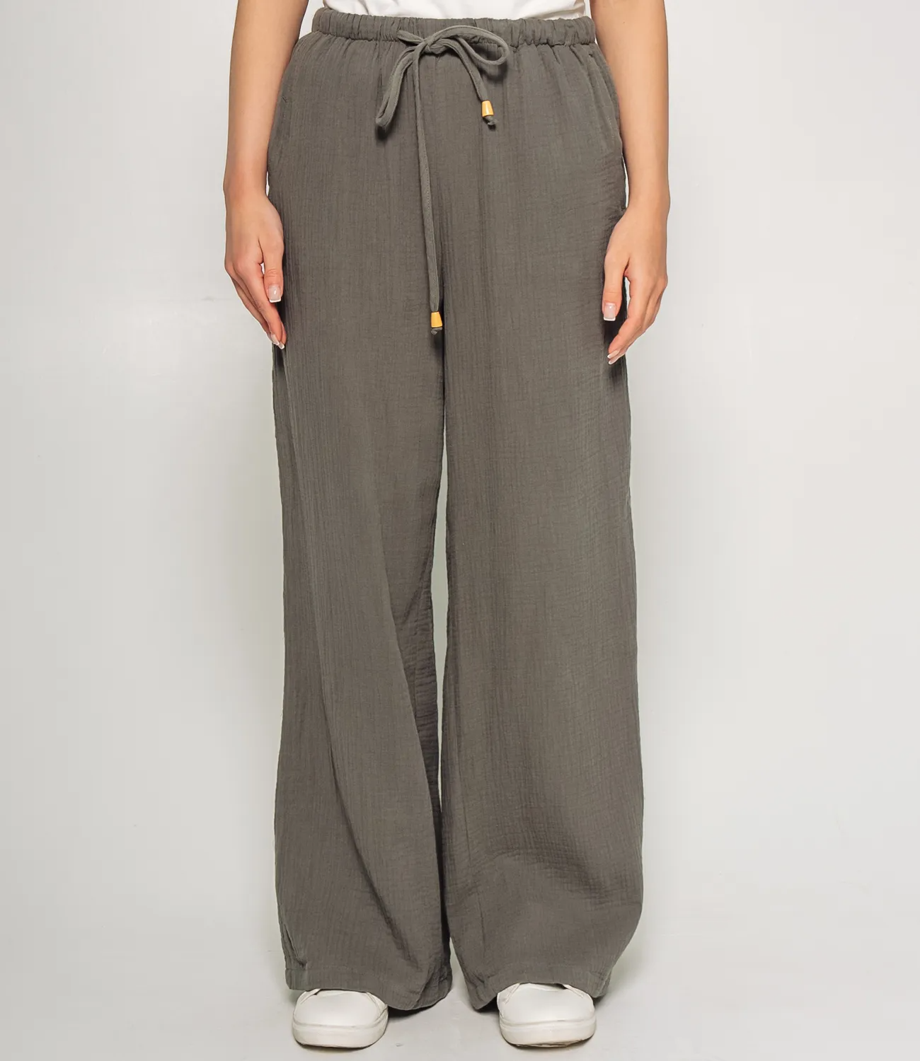 Брюки – это незаменимая часть гардероба, которая подчеркивает женственность и уникальность каждой представительницы прекрасного пола. Эти брюки имеют свободный и расслабленный стиль, идеально подходящий для теплой погоды и повседневной носки. Эти брюки легко комбинируются с различными элементами одежды, что позволяет создавать стильные образы для любого случая. Производитель знает, как разработать стильные и комфортные решения, которые удовлетворяют потребности самых требовательных клиентов. Для пошива использована ткань 100% хлопок, которая характеризуется отличным качеством. Даже после множества стирок эти брюки сохранят свою первоначальную привлекательность и форму. Обратите внимание на цвет и текстуру ткани — они гармонично сочетаются с различными цветами и образами. Для удобства мы предоставили таблицу размеров на нашем сайте, чтобы ваши покупатели могли точно подобрать подходящий размер. Предложенная нами цена является доступной и выгодной для оптовых покупателей, что делает эти брюки отличным дополнением к ассортименту вашего магазина. Подарите своим клиентам удовольствие носить стильные и комфортные брюки, которые подойдут для любых летних дней! Рост модели: 168, параметры: 89-63-90.