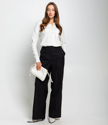 Брюки — это незаменимый элемент гардероба, который подчеркивает стиль и индивидуальность каждой женщины. Брюки со средней посадкой, прямые. Пояс средней ширины сидит на талии без видимых шлевок сверху, линия запаха и передняя пройма аккуратно скрыты, что создаёт чистый, минималистичный верхний срез. Состав: 65% хлопок, 30% полиэстер и 5% спандекс. Штанины прямые с заметным объёмом и мягкими складками, плавно переходят в эластичные манжеты внизу, которые собирают ткань и создают характерную форму. Обратите внимание на современный крой и удобную посадку, которые ваши покупатели оценят по достоинству. Мы также предоставили таблицу размеров на нашем сайте, чтобы все могли выбрать идеальный вариант. Наша цена является приемлемой для оптовых покупателей, что делает эту модель отличным дополнением к вашему ассортименту. Дайте вашим клиентам возможность выглядеть стильно и чувствовать себя комфортно с этими брюками, ведь каждая женщина заслуживает выражать свой индивидуальный стиль! Рост 168 см, 85-63-92. Вы можете заказать онлайн презентацию на интересующие Вас модели. Наши менеджеры свяжутся с Вами и проведут индивидуальную видеотрансляцию, помогут составить заказ и ответят на Ваши вопросы.
