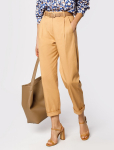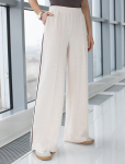 Брюки-палаццо всегда сделают образ роскошным. Для пошива модели использовали эластичный креп с плотным переплетением нитей. Ткань почти не мнется, поэтому стрелки долго сохраняют четкость. Имеют приятную фактуру с матовым блеском. Совет стилиста: строгий и элегантный образ дополните любым жакетом с водолазкой и обувью на высоком каблуке, а сели хотите создать непринужденный образ, сочетайте с рубашкой, футболкой и кедами.