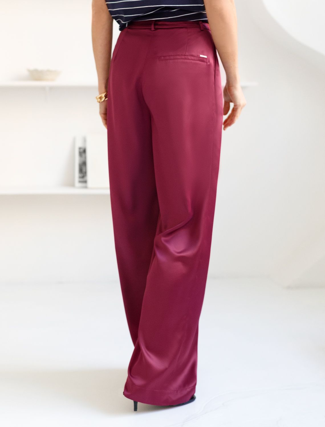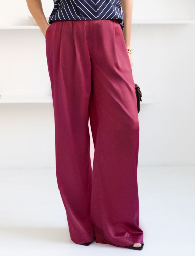 Брюки палаццо цвета бургунди из струящегося сатина, который придает образу эффектный и стильный вид. Мягкий сатин приятен к телу, в них комфортно на протяжении долгой носки. Брюки длиной в пол визуально вытягивают силуэт и подходят как для высоких, так и для женщин низкого роста. Модель идеально садится на большие размеры, не сковывая движений. Благородный материал обеспечивает не только привлекательный внешний вид, но и ощущение легкости в носке. Высокая посадка выгодно подчеркивает фигуру, добавляя изящества и современного шарма, они струятся при каждом движении.