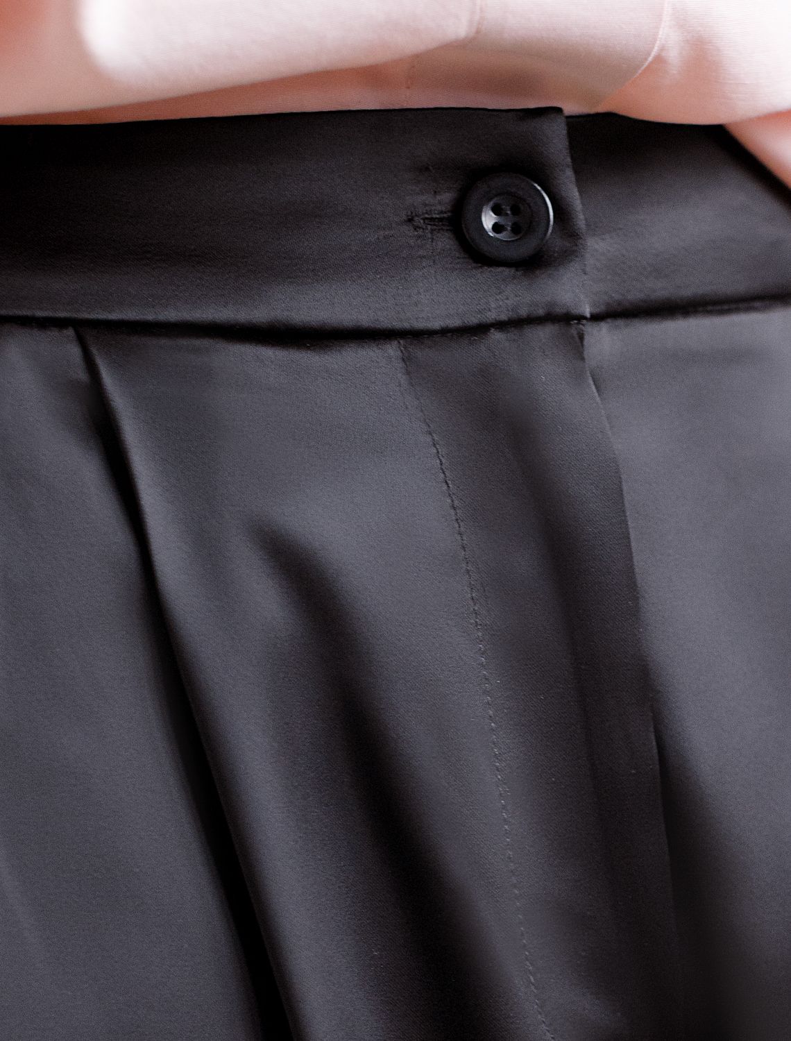 Брюки палаццо черного цвета из струящегося сатина, который придает образу эффектный и стильный вид. Мягкий сатин приятен к телу, в них комфортно на протяжении долгой носки. Брюки длиной в пол визуально вытягивают силуэт и подходят как для высоких, так и для женщин низкого роста. Модель идеально садится на большие размеры, не сковывая движений. Благородный материал обеспечивает не только привлекательный внешний вид, но и ощущение легкости в носке. Высокая посадка выгодно подчеркивает фигуру, добавляя изящества и современного шарма, они струятся при каждом движении.