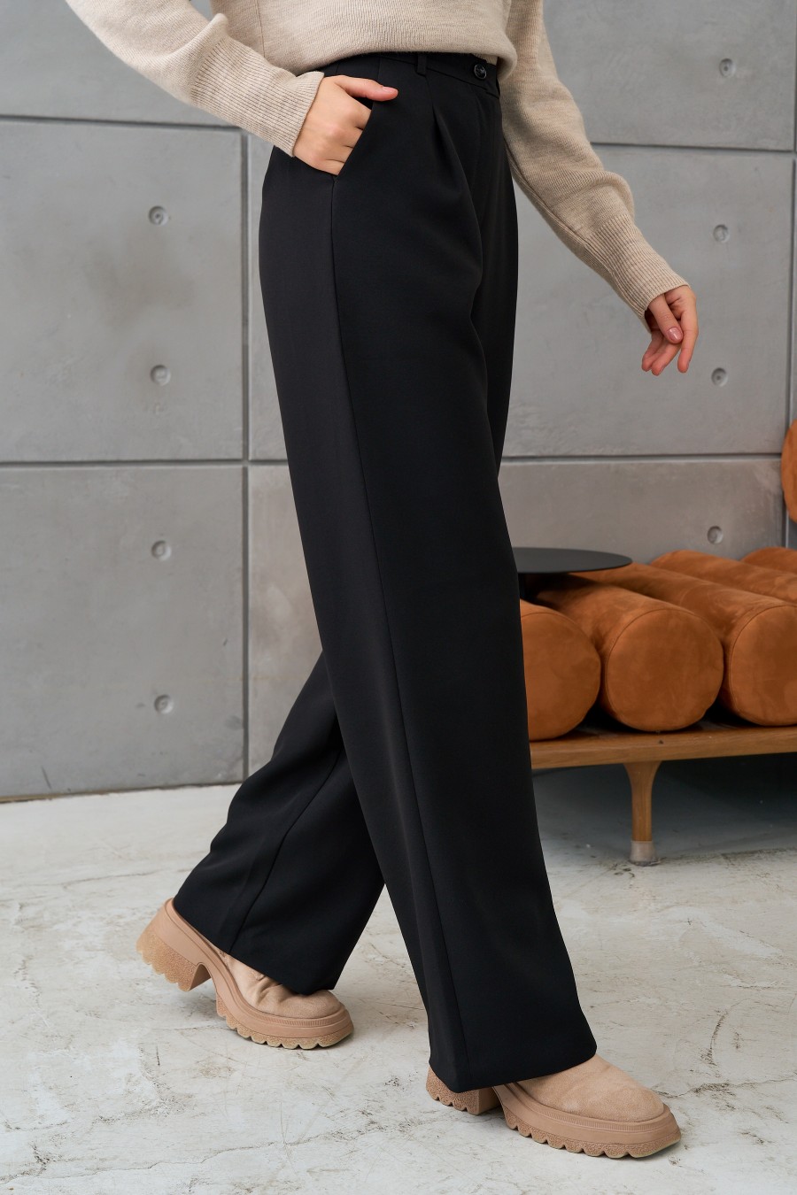 Эти женские брюки палаццо идеально подходят для создания элегантного и стильного образа. Изготовленные из качественного полиэстера и вискозы, они обладают прочной тканью, которая обеспечивает комфорт и долговечность. Черный цвет и классический прямой крой делают эти брюки универсальными для различных ситуаций: будь то офисный стиль, ученик школы или повседневный образ. С резинкой на поясе, они обеспечивают удобную посадка и подходят как для женщин так и для подростков. Эти брюки отлично подойдут для осеннего и демисезонного периода.