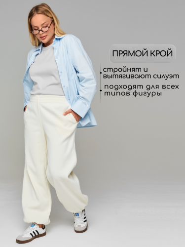 Брюки женские прямые, с высокой посадкой, на притачном поясе. Центральная застежка на молнию с пуговицей. По переднему полотнищу у пояса складки, по заднему – вытачки. По задней половинке пояс частично эластичный, что подарит удобство при носке. Специфика кроя обеспечит отличную посадку на любой тип силуэта.