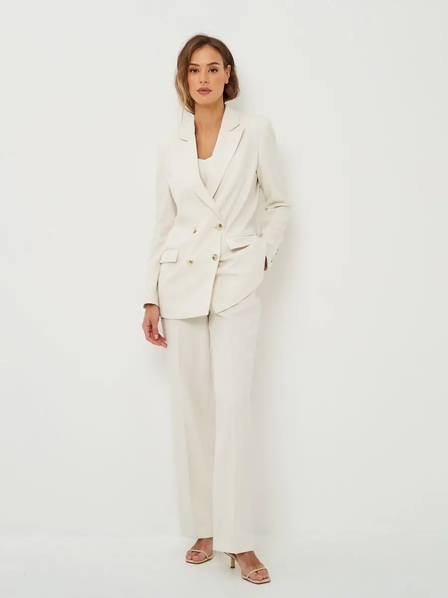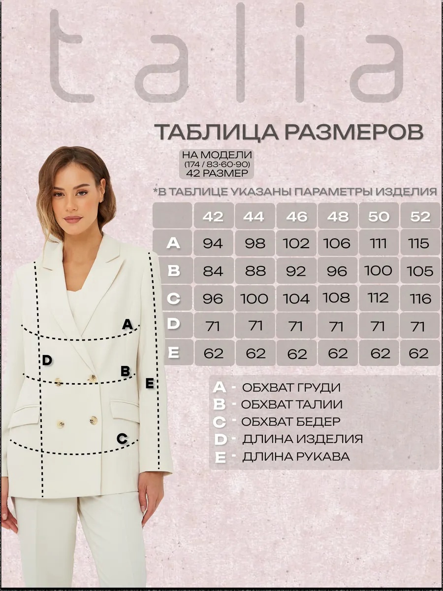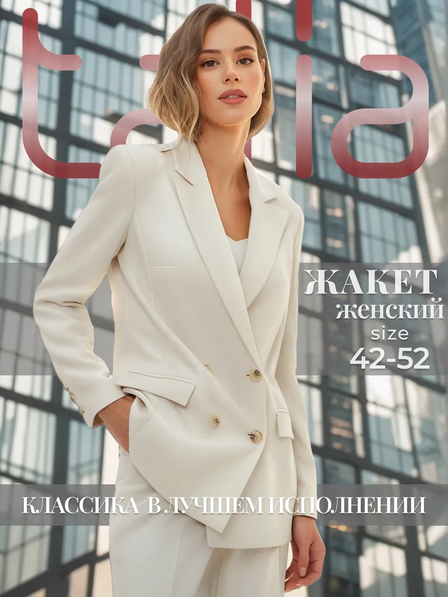 Стильный женский удлиненный пиджак из плотного материала идеально подойдет для лета. Белые и молочные оттенки создают элегантный образ, легко сочетающийся с разными нарядами. Полуприталенный силуэт подчеркивает фигуру и придает уверенность. Пиджак отлично подходит для офиса и повседневной носки благодаря строгому, но современному дизайну. Удобные рукава и подкладка обеспечивают комфорт, а теплый материал защищает от прохлады вечеров. Универсальный и модный, этот жакет станет незаменимой частью гардероба для работы и отдыха, подчеркивая ваш стиль в любых ситуациях.